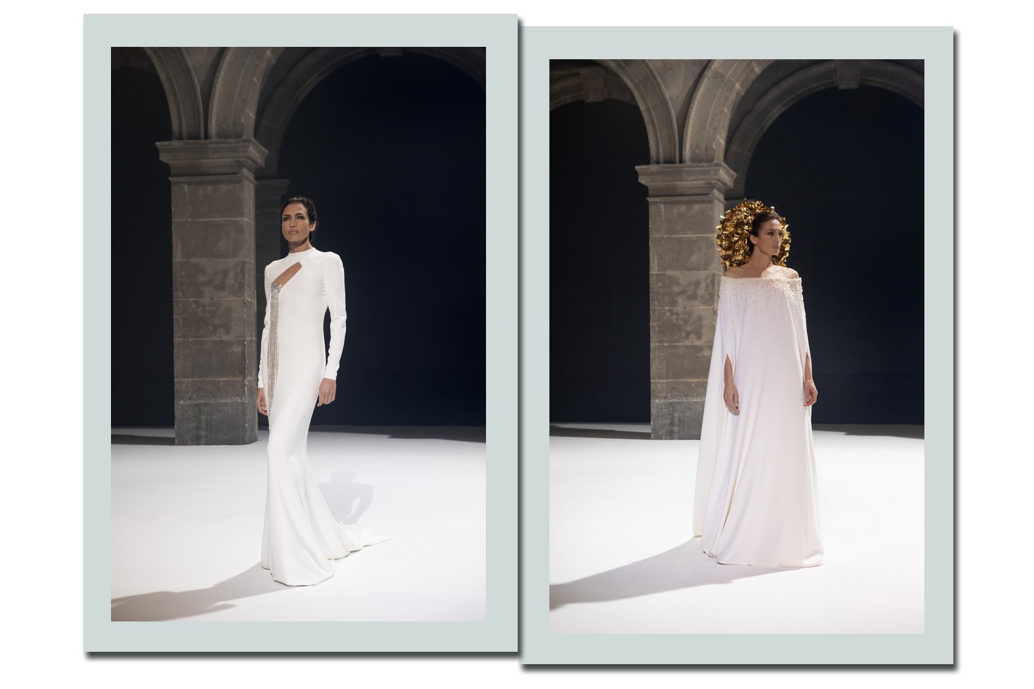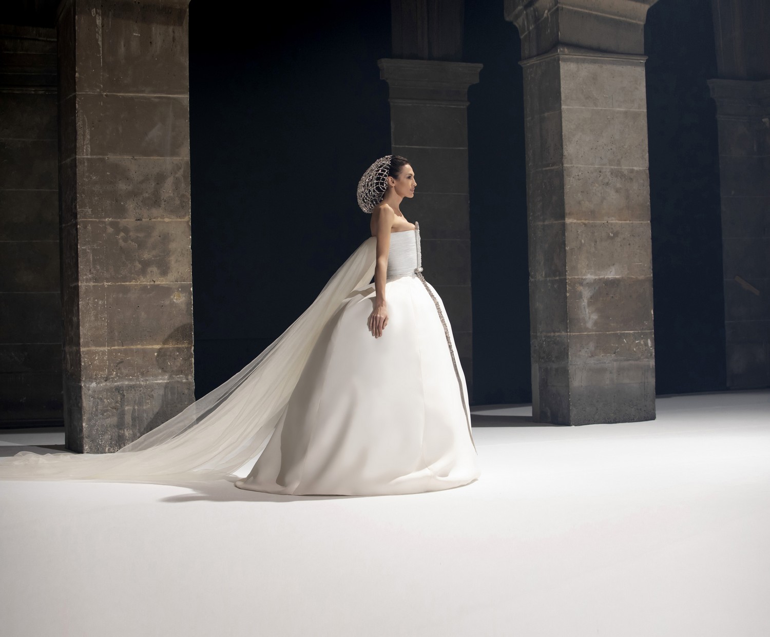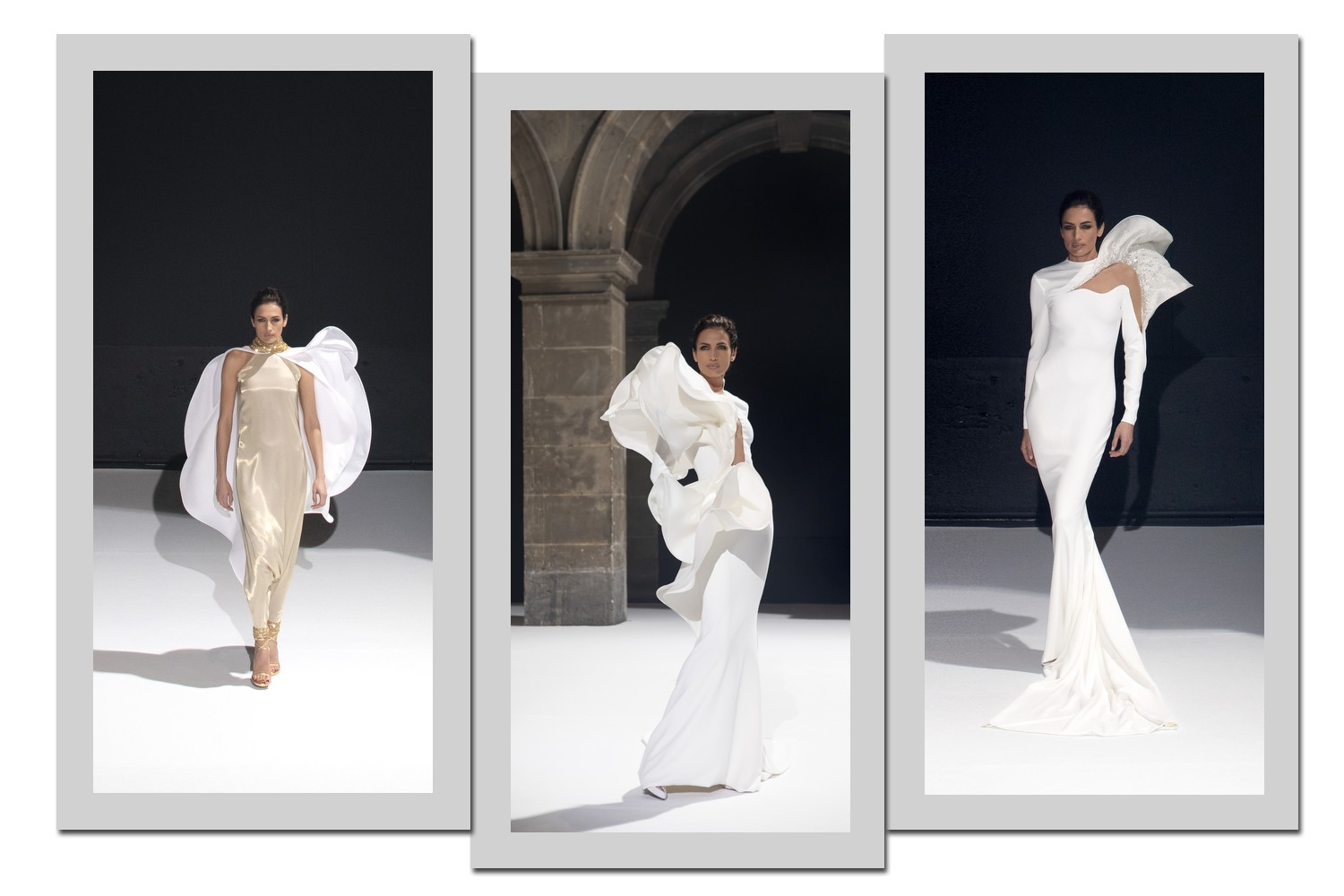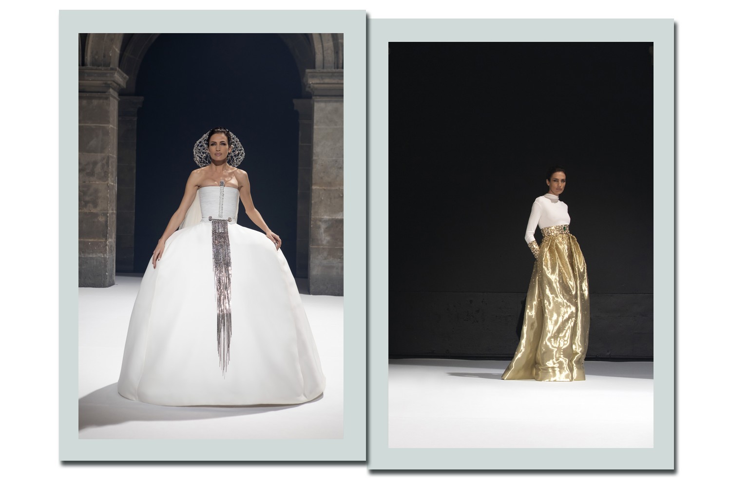 A cultura espanhola, as formas esculturais e detalhes que remetem às pétalas de flores são os principais destaques da coleção de da Stephane Rolland. Ombros volumosos, saias arredondadas e headpices que são verdadeiras joias encantam pelo trabalho delicado e artesanal.
