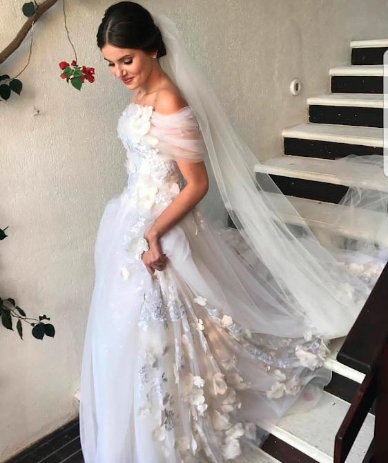 Camila Queiroz veste Lethicia Bronstein para casamento com Klebber Toledo
