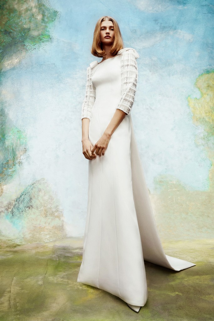 O objetivo da marca com as caudas, nesta coleção, é exatamente este: acrescentar drama a peças mais minimalistas. Uma das maneiras de conseguir alcançar isso, mas sem tirar a modernidade da peça, é com cortes retos e tecidos mais firmes.