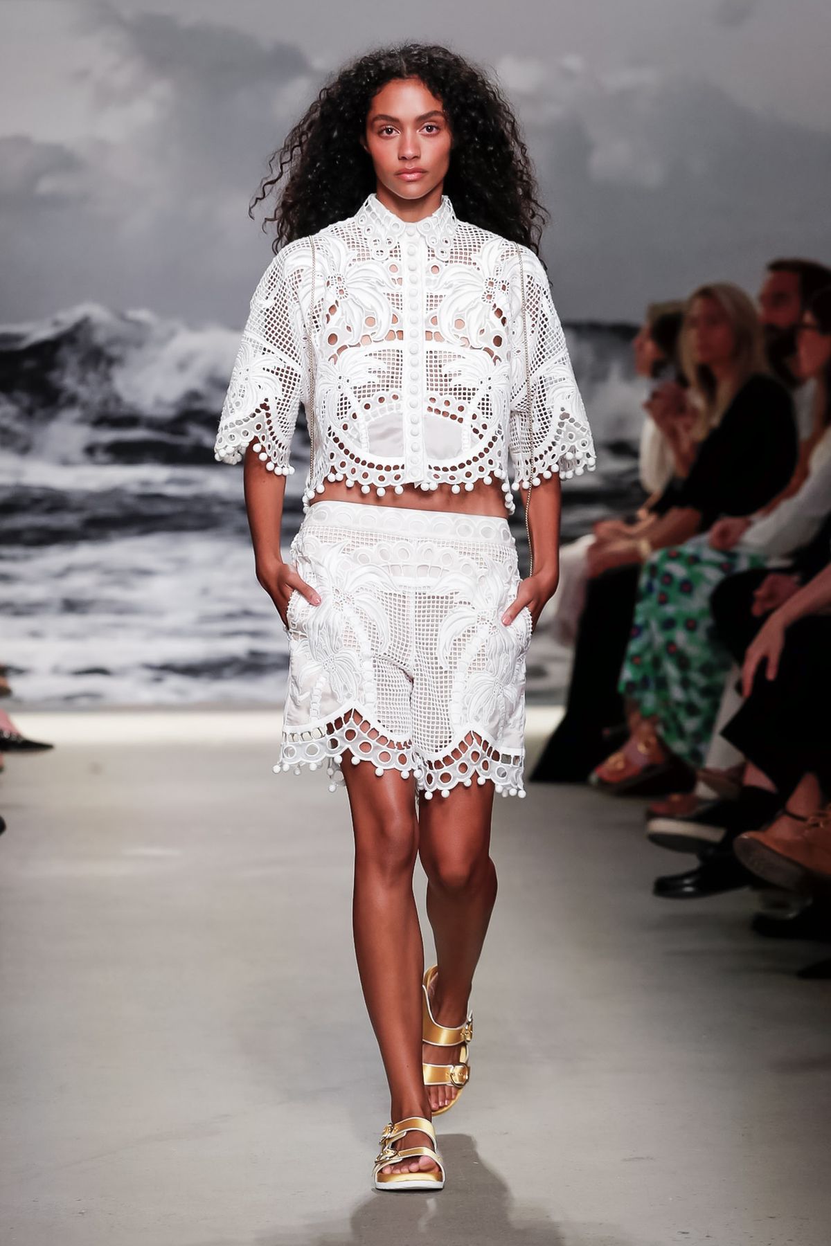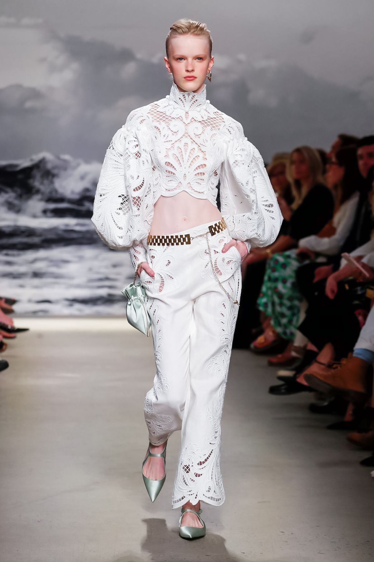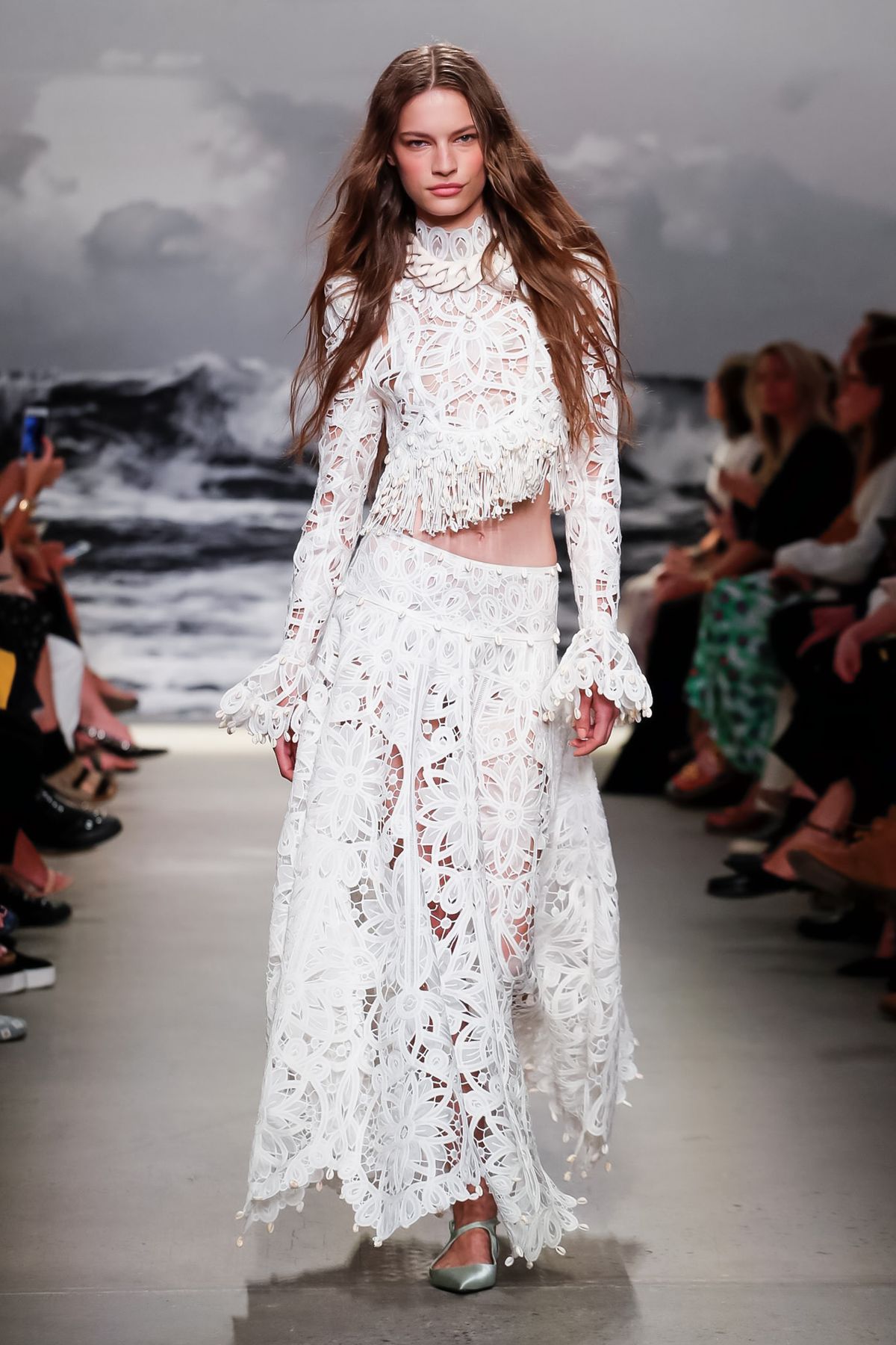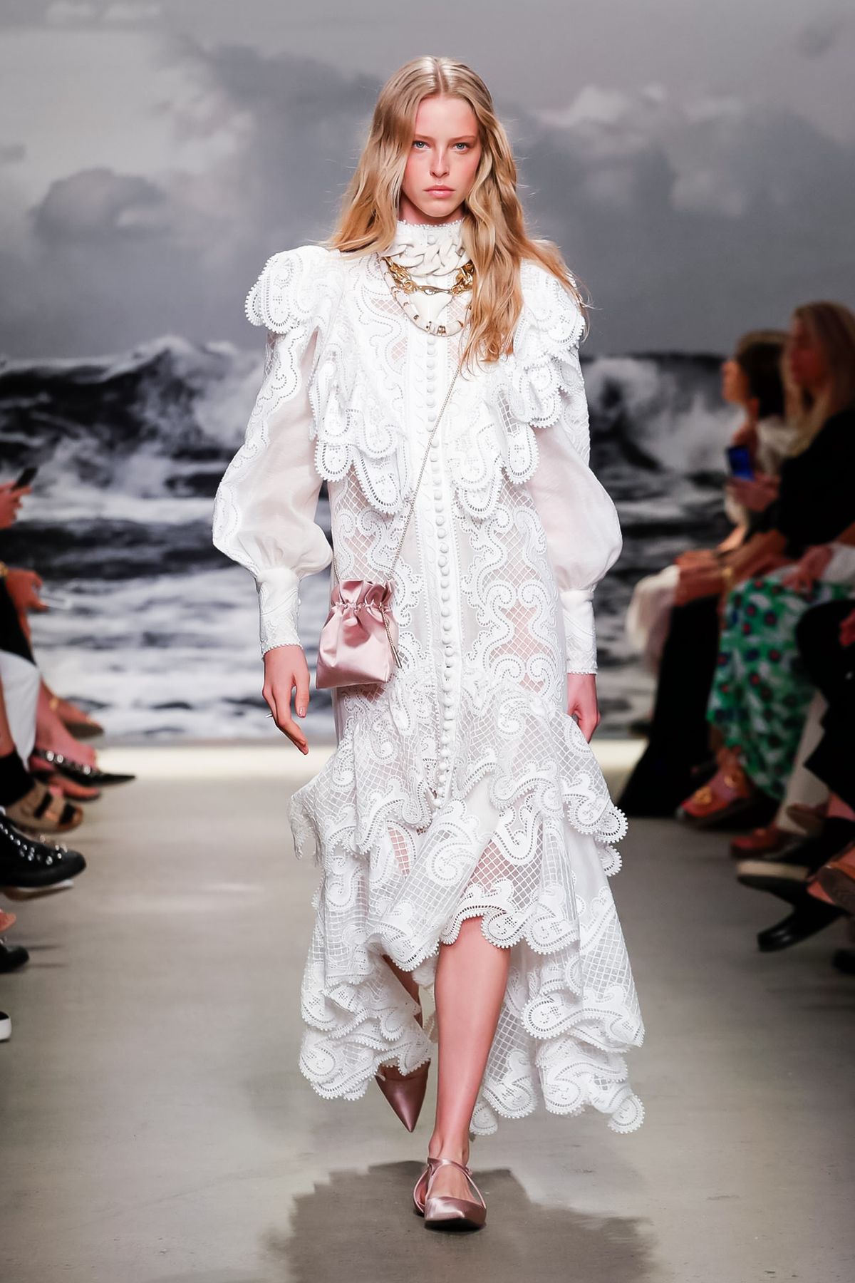 O verão 2020 da Zimmermann aparece cheio de bossa e sensualidade na passarela da New York Fashion Week. Além das peças com estampas de lenço – marca registrada da label australiana – no azul e nos tons quentes, os looks all white são os que roubam a cena. Misturas de rendas, como o guipire e o macramê, enriquecem as criações, esbanjando feminilidade e poder. Os maxicolares também chamam a atenção, mostrando que o mais é sinônimo de elegância.