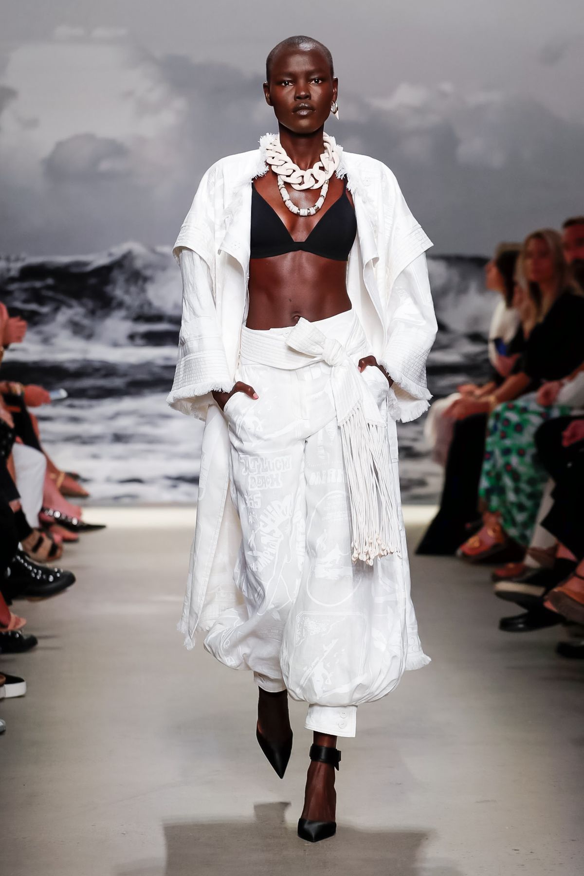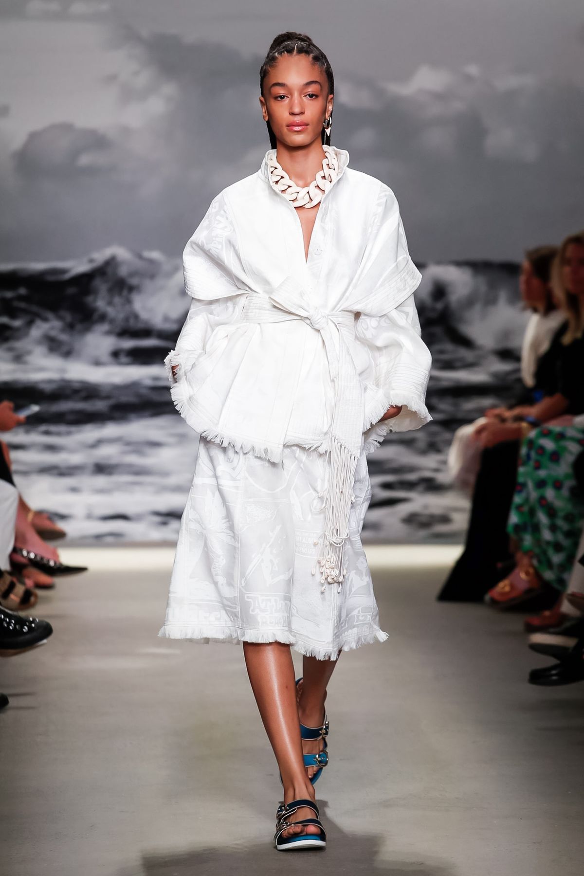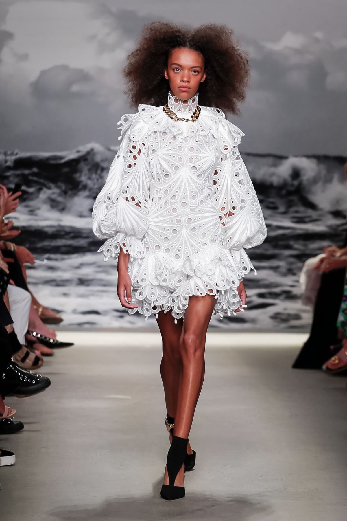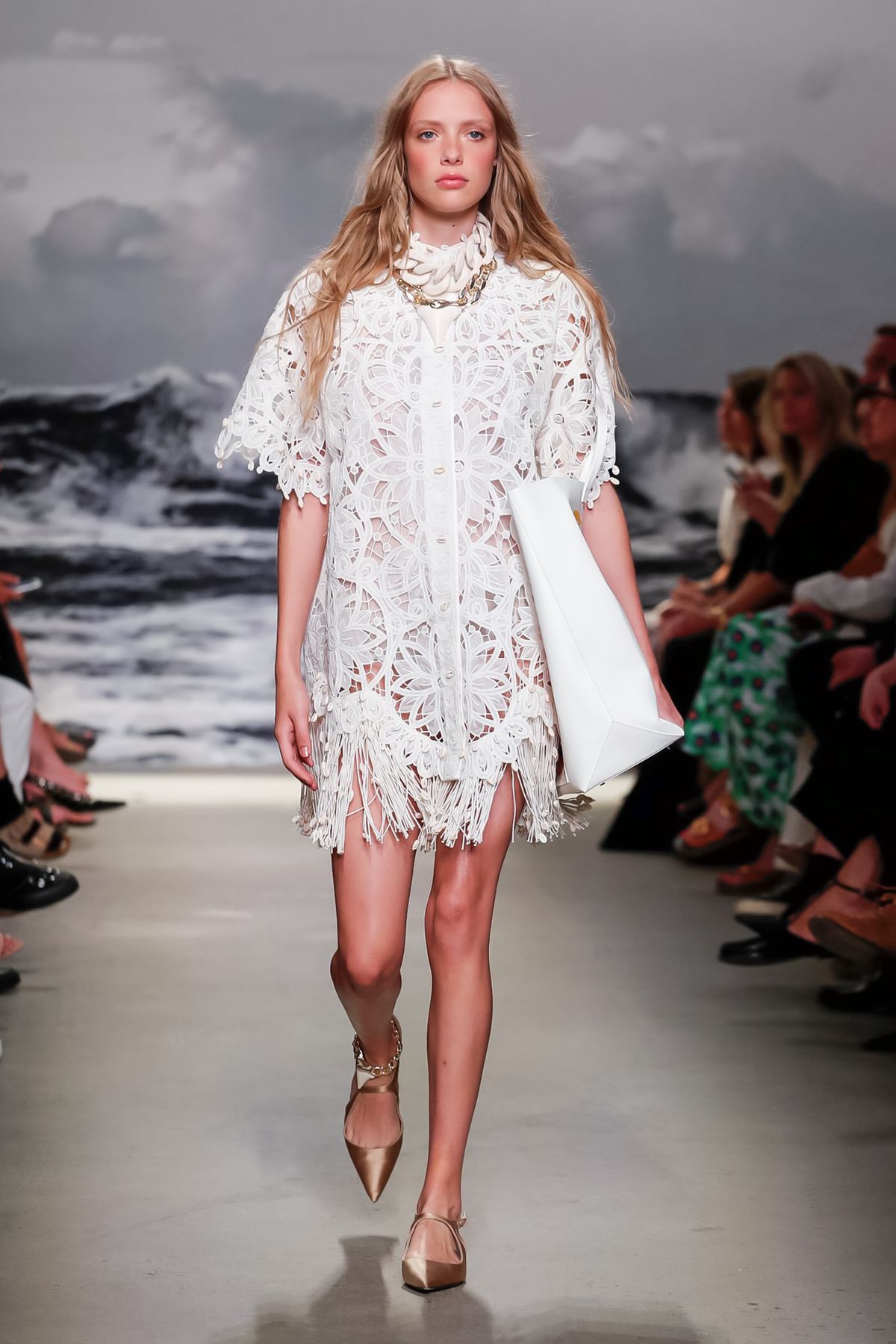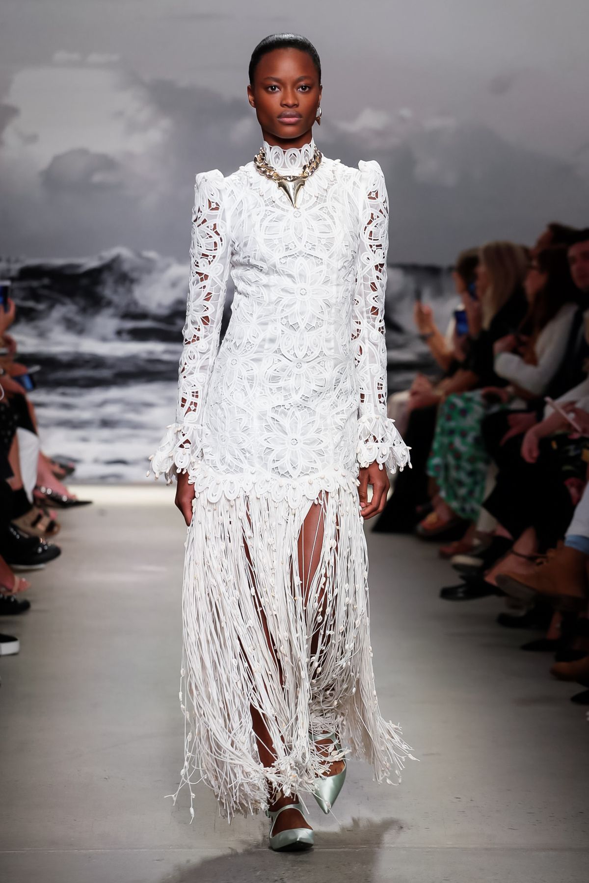 O verão 2020 da Zimmermann aparece cheio de bossa e sensualidade na passarela da New York Fashion Week. Além das peças com estampas de lenço – marca registrada da label australiana – no azul e nos tons quentes, os looks all white são os que roubam a cena. Misturas de rendas, como o guipire e o macramê, enriquecem as criações, esbanjando feminilidade e poder. Os maxicolares também chamam a atenção, mostrando que o mais é sinônimo de elegância.
