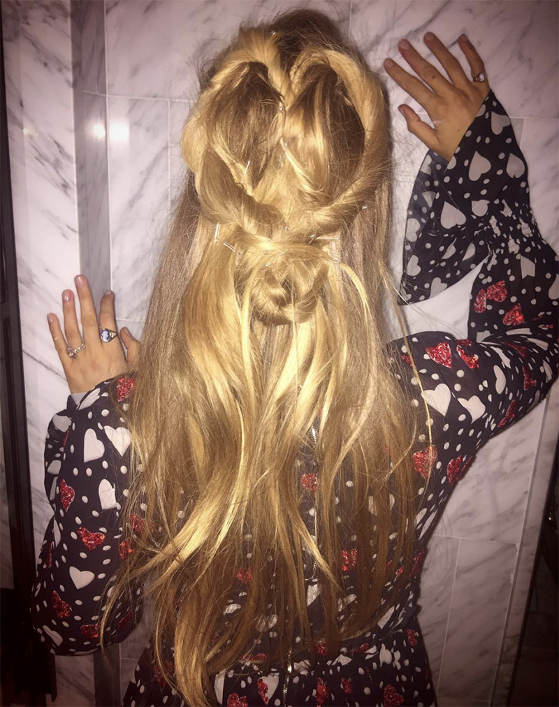 Para o dia dos namorados, a atriz foi criativa: fez o meio rabo, e prendeu as mechas em forma de coração.