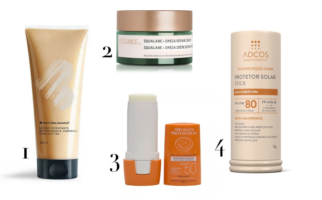 Mesmo tomando cuidado, a pele ainda vai ser muito exposta ao sol. Por isso, depois de chegar em casa e fazer a sua rotina de limpeza, investir em hidratantes que restauram a pele enquanto você descansa. Para quem quer incluir o Carnaval na rotina de skincare, a Quem Disse, Berenice? lançou um hidratante com glitter biodegradável em sua composição.