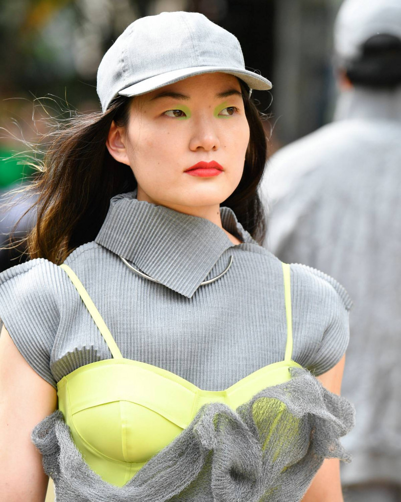 Não faltaram cores na 55ª edição do SPFW – principalmente quando o assunto é beleza. Sombras néon, pinturas faciais e pontos de cor foram algumas técnicas usadas pelos beauty artists da edição, criando opções para todos os gostos. Uma das maquiagem que se destacaram foi o visual de Martins, com assinatura de Laura. Para este desfile, a maquiadora se inspirou, assim como a marca, no New Wave, traduzindo isso na beleza com um blush cartão bem rosado e uma sombra neon verde, investindo na combinação infalível.