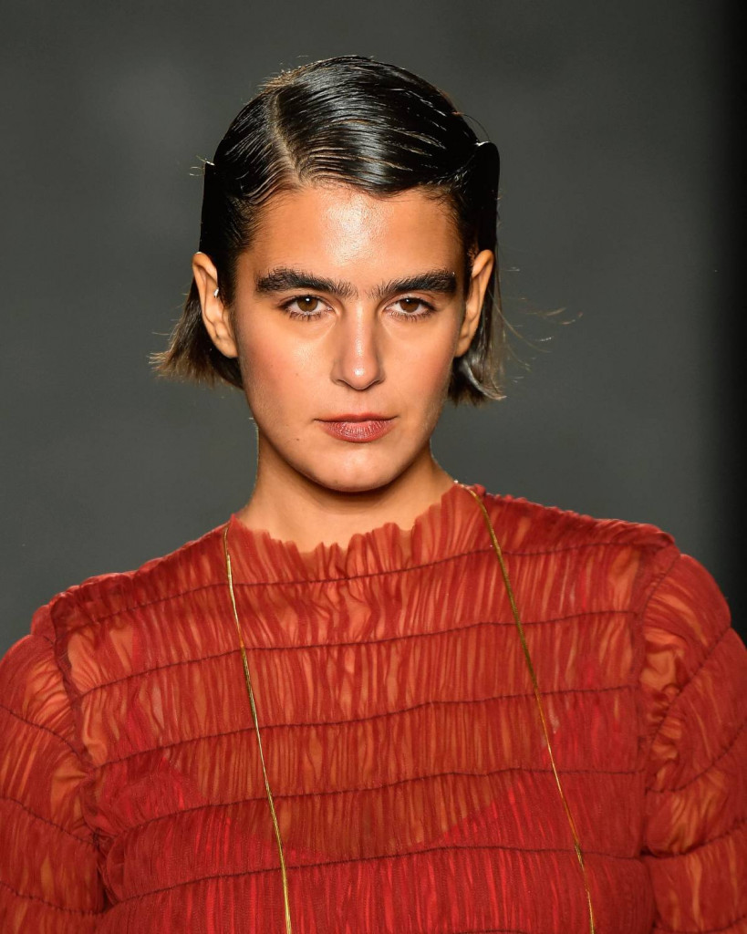 Uma das principais tendências de beleza do momento, o cabelo com efeito molhado, também apareceu nas passarelas do SPFW. Para o dia, a dica é adicionar gel, spray ou pomada na raiz do cabelo, dividindo os fios meio a meio ou criando uma risca lateral, como fizeram Laura La Laina para Marina Bitu e Robert Estevão para Forca Studio. À noite, é possível encorpar o visual levando os produtos por todo o comprimento das madeixas, como na beleza de Greg Joey, assinada por Vanessa Rozan.