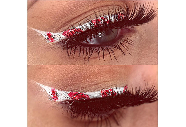 Para criar o efeito, basta acrescentar um twist no tradicional gatinho, adicionando traços vermelhos feitos com delineador liquido bem grosso. Caso não ache um delineador no tom, é possível conseguir o truque aplicando um batom líquido (atenção para não exagerar, porque o batom pode pesar um pouco nos 0lhos). Você usaria?