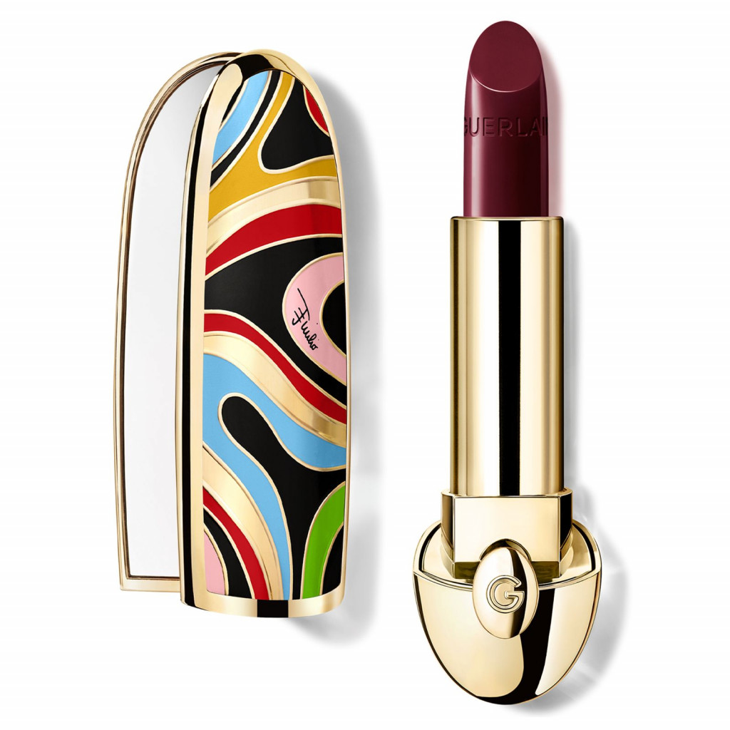 C: Mas sombras pretas e brancas também são oferecidas. Por que decidiram incluí-las na paleta? V: Esses dois tons atemporais são pilares que podem ser usados como base para brincar com roxo e laranja. Adicionar um toque de branco no centro da pálpebra antes de aplicar a sombra roxa dá um resultado muito luminoso. Assim como um esfumado combinado com roxo também é muito bonito. C: O preto é muito importante nas estampas Pucci. Ele destaca e, ao mesmo tempo, enriquece o movimento dos padrões, e eu amo maquiagem branca. O branco traz frescor e ilumina os olhos. Há essa nova tonalidade de Rouge G criada especialmente para a coleção. C: O vermelho é uma cor chave para mim. Parece simples, mas entre todas as diferentes tonalidades dessa paleta de cores, eu realmente acho que encontrar o vermelho certo é muito complexo. V: Desenvolvemos um vermelho cereja preto profundo e ultra-pigmentado, que não existia na paleta de cores da Guerlain. É uma tonalidade realmente original! Todos podem escolher aplicar essa tonalidade em um lábio e uma tonalidade diferente no outro, para replicar os lábios bicolores que Camille adora.