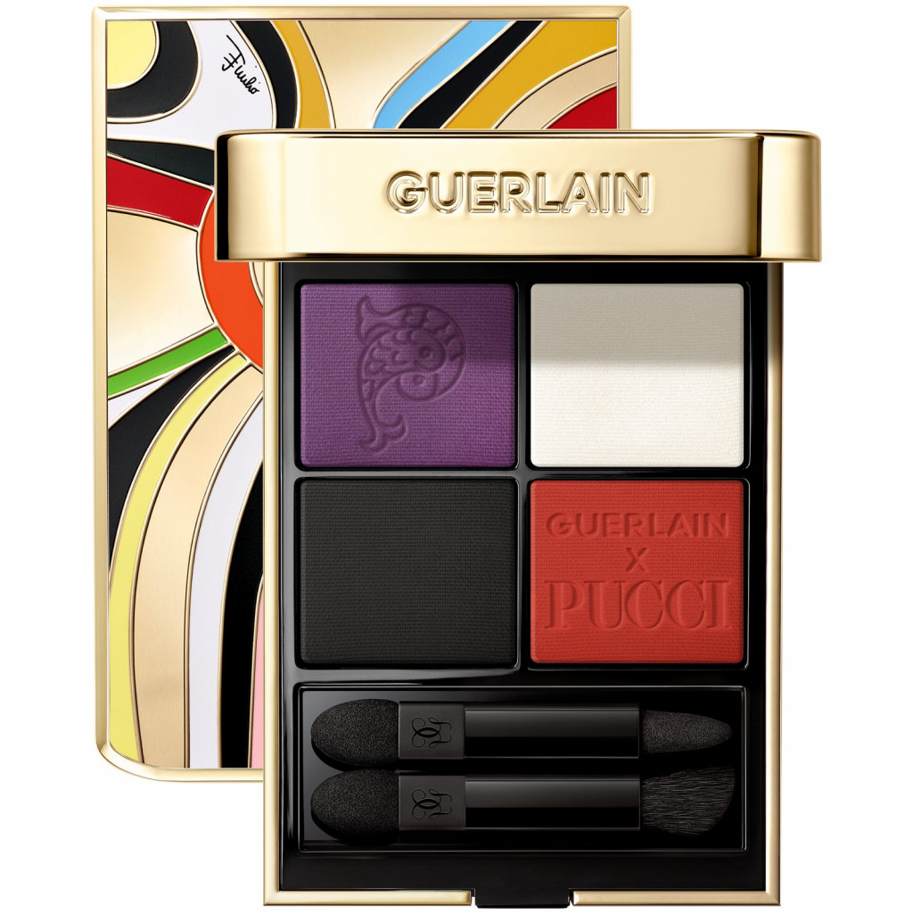 V: O roxo da paleta Ombres G na coleção foi uma ideia sua, Camille? C: O roxo é uma cor muito Pucci, especialmente em associação com o laranja. Em geral, na Pucci, gostamos de combinações de cores inesperadas. V: Acontece que, quando Camille me falou sobre incluir um roxo na paleta, eu realmente queria desenvolver um roxo. Então, ela nem precisou terminar a frase! Criamos um roxo matte aveludado, para manter as coisas no registro couture. Na verdade, todas as tonalidades da paleta são matte.