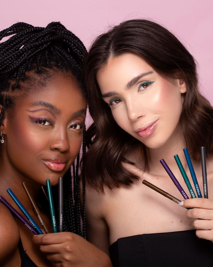 Vizzela, marca de cosméticos nacional e 100% vegana, traz para sua gama de maquiagens as lapiseiras metalizadas, com cores intensas e altamente pigmentadas. Desta vez, são cinco opções de lapiseira (purple, green, blue, grey e brown), que possuem textura muito macia para a aplicação e alta pigmentação. #Testamos: realmente o produto entrega tudo que promete! As cores são divinas, impossível escolher uma só, e a pigmentação é ótima.