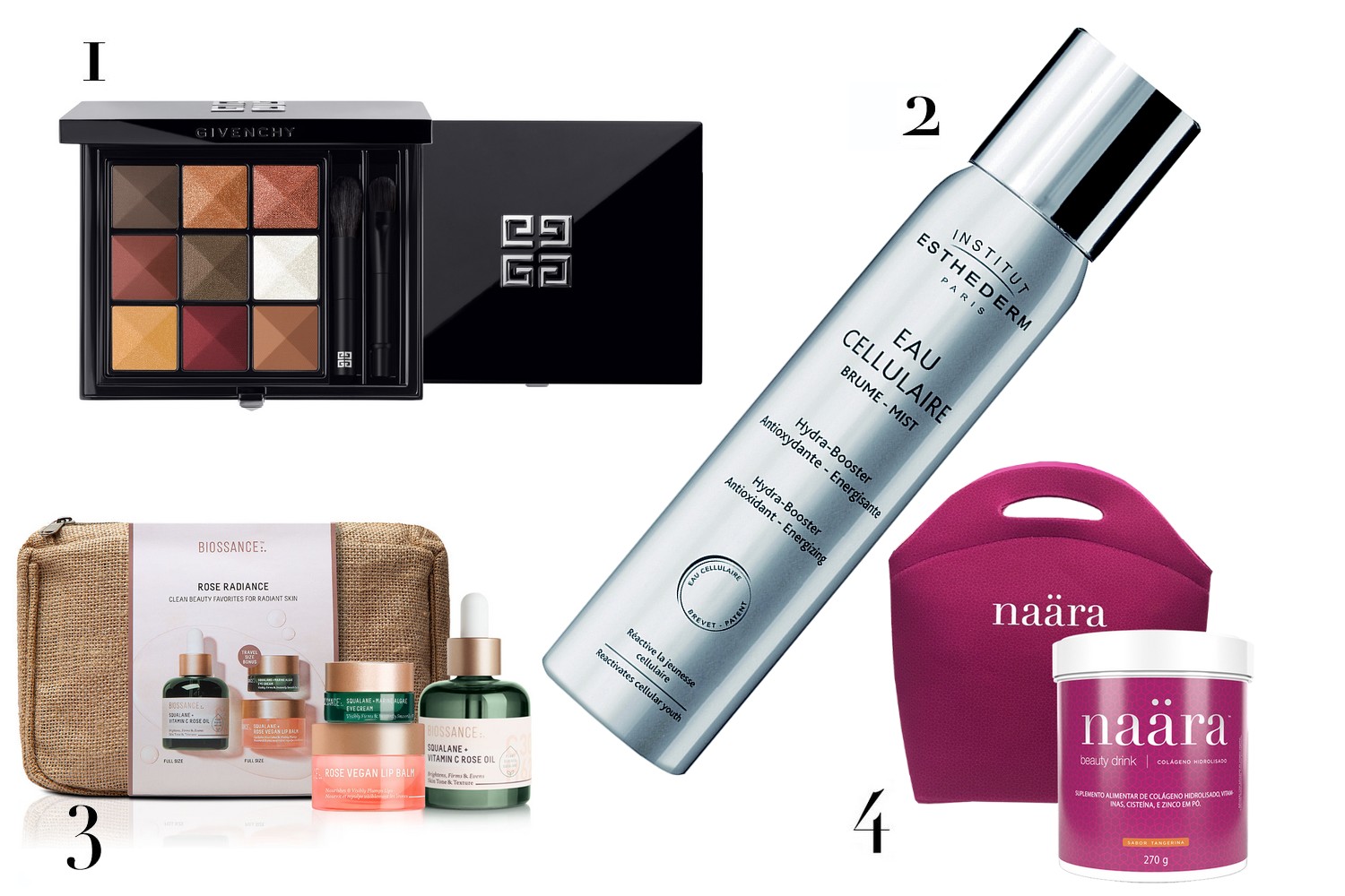O kit Rose Radiance (R$ 388,00), da Biossance, traz a Vitamina C com Extrato de Rosas e esqualano (30ml), o Lip Balm vegano e uma versão travel size do novo Creme para Olhos com algas marinhas e esqualano.