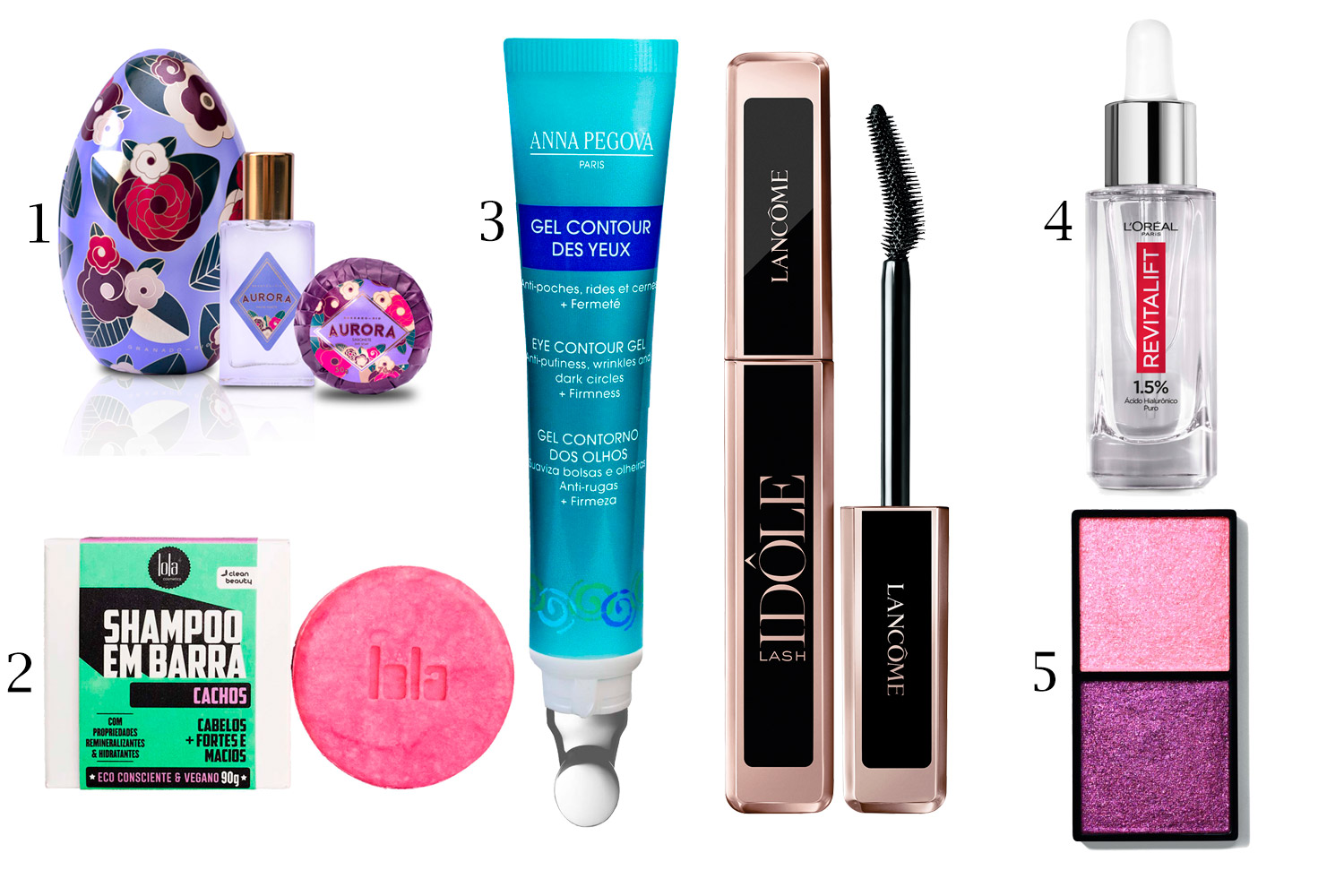 O kit Ovo Minicolônia Aurora (R$ 82), da edição limitada de Páscoa, da Granado, traz uma explosão de flores. Os ovos decorativos são inspirados em uma tradição europeia e representam sorte e prosperidade.
