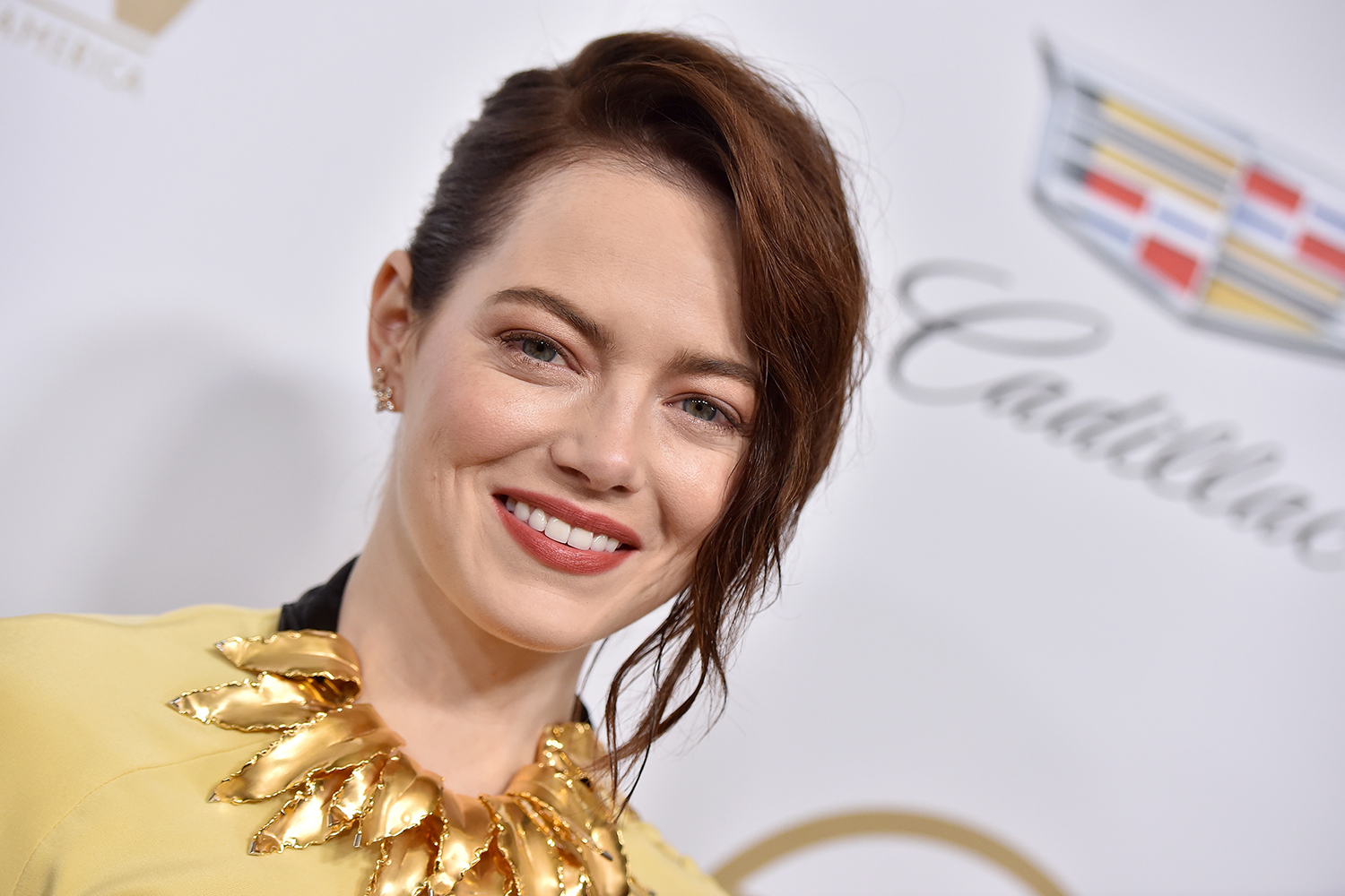 Emma Stone surpreendeu na noite de domingo (20.01), ao pisar tapete vermelho no 30º Annual Producers Guild Awards, em Beverly Hills, na Califórnia, ao estrear seu novo cabelo castanho escuro. Ela trocou o seu tradicional castanho-avermelhado por um castanho mais fechado, e fez penteado de coque baixo com um lado penteado para trás, o outro com peças onduladas caindo no rosto.