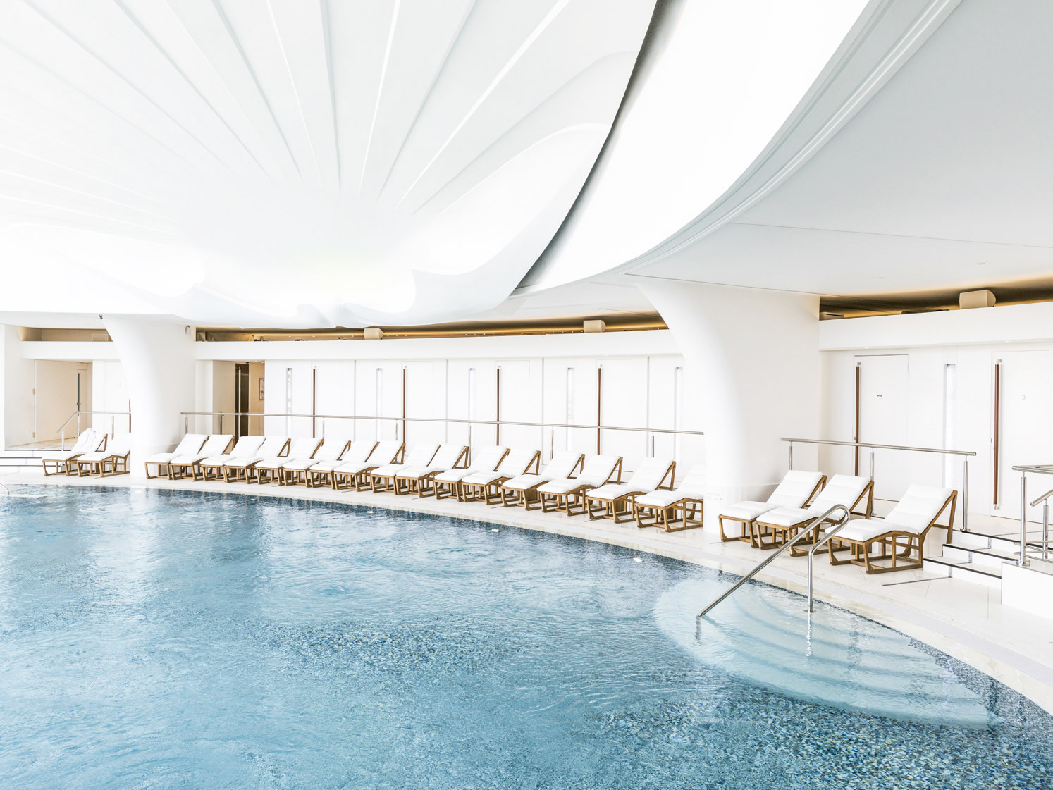 O mármore rosa da edificação por si só induz à sensação de leveza. Debruçado sobre o mar, o Thermes Marins foi fundado em 1895. O último retrofit contemplou tanto o design, assinado por Olivier Antoine, como a equipe – de 28 especialistas, incluindo médicos, nutricionistas e fisioterapeutas.