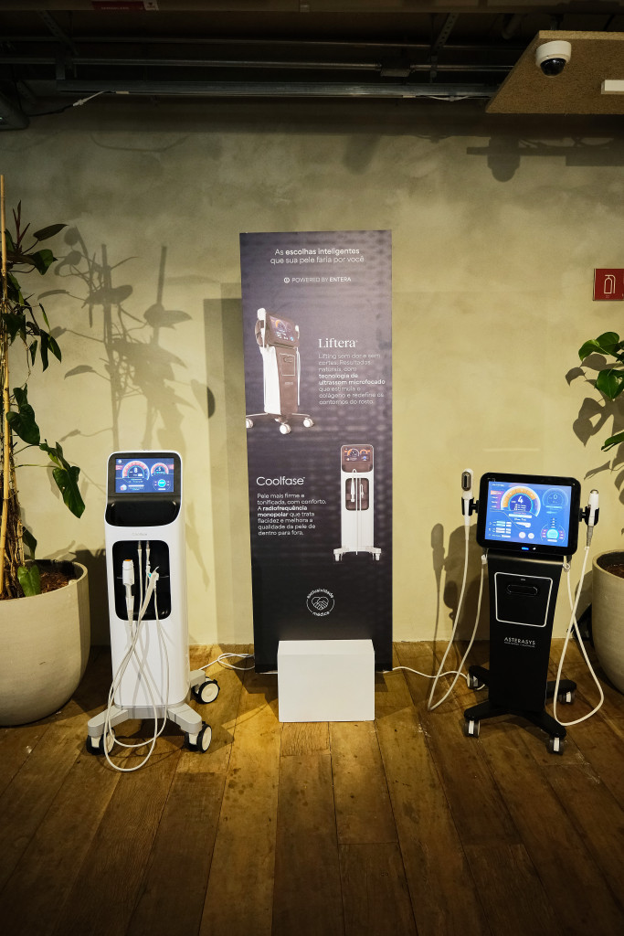 Durante o dia, os convidados puderam vivenciar experiências que traduzem esse conceito na prática. A Liftera apresentou seu lifting sem dor e sem cortes — um ultrassom microfocado que redefine contornos e estimula o colágeno — enquanto a Coolfase mostrou o poder da radiofrequência monopolar, que trata a flacidez e melhora a qualidade da pele de dentro pra fora. Quem esteve por lá pôde até fazer um pequeno test drive dos procedimentos, com aprovação imediata.