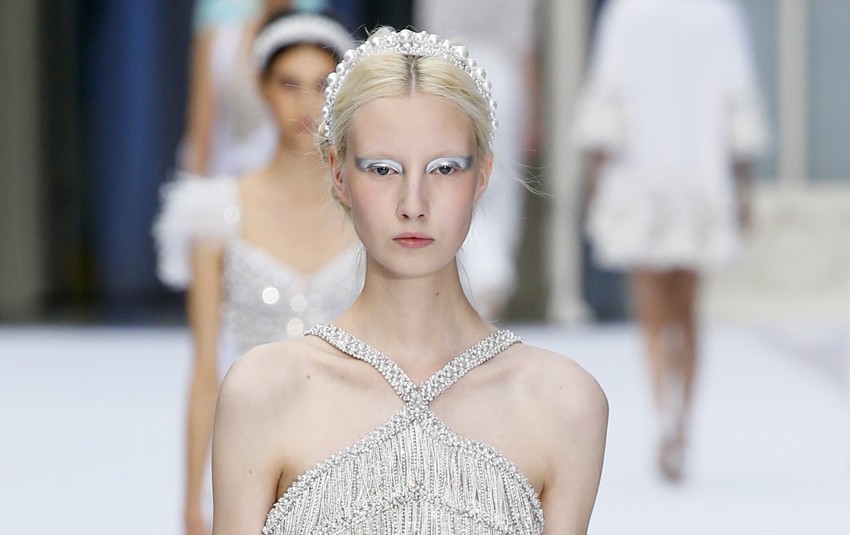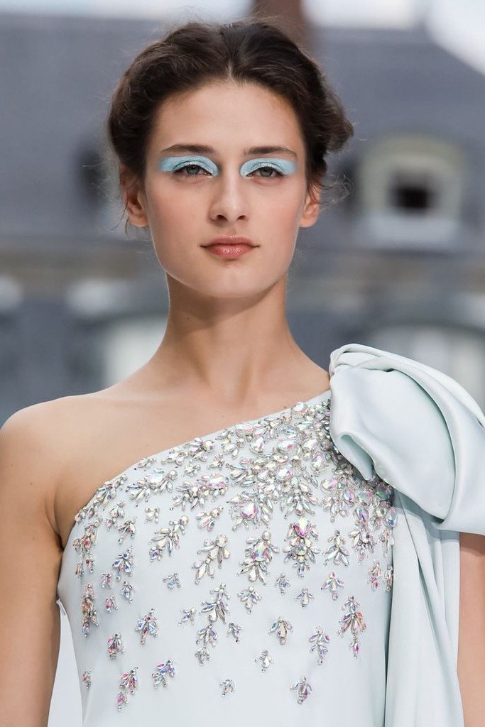 Outra beleza que cruzou a passarela foram as sombras metálicas. Em tons de prata e azul, o produto muito intenso foi usado com uma pincelada dura e quadrada na pálpebra das modelos. A sombra não foi esfumada, o que acrescenta um efeito gráfico ao visual, mas, quando usada na vida real, pode ser combinada com um tom de preto ou marrom para suavizar o resto do olhar.