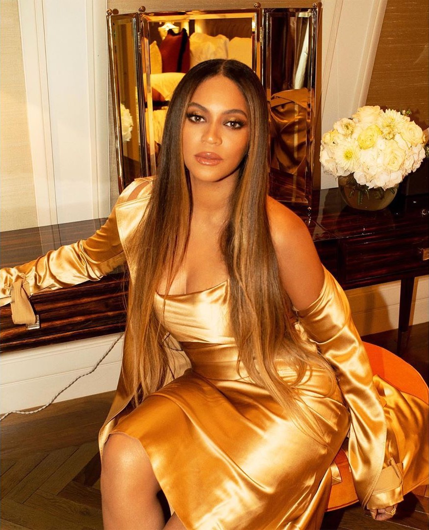 As camadas de tons caramelos que emolduram o rosto de Beyoncé faz com que seu cabelo pareça impressionantemente brilhante e com várias dimensões.