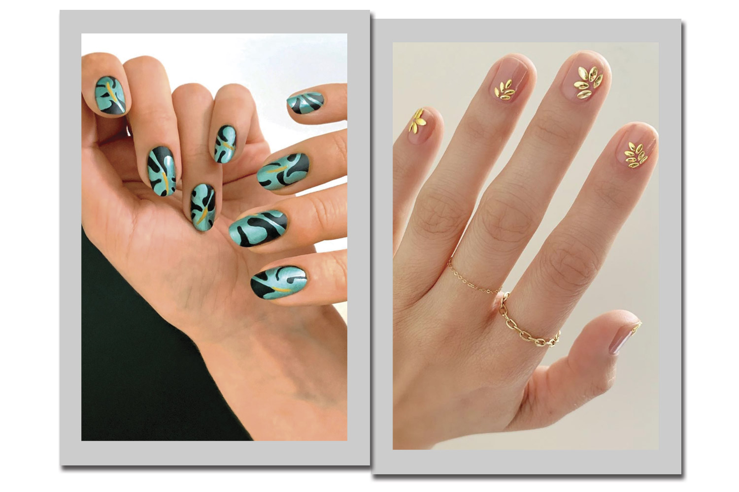 Atualmente, nossos feeds do Instagram são cerca de 50% das plantas, 50% de beleza. Foi apenas uma questão de tempo até combinarmos os dois. Um toque de ouro nas unhas nude é elegante o suficiente para a noite.