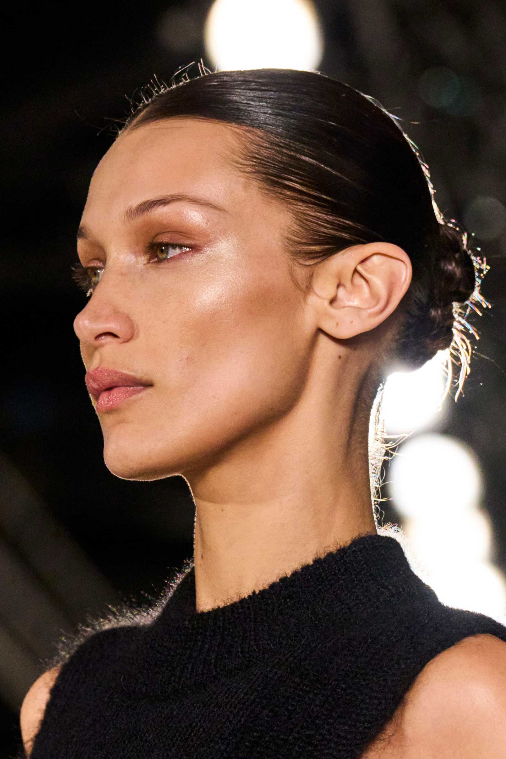 Enquanto isso, a Max Mara trouxe de volta os coques baixos de aparência atlética, com repartição central e acabamento com brilho.
