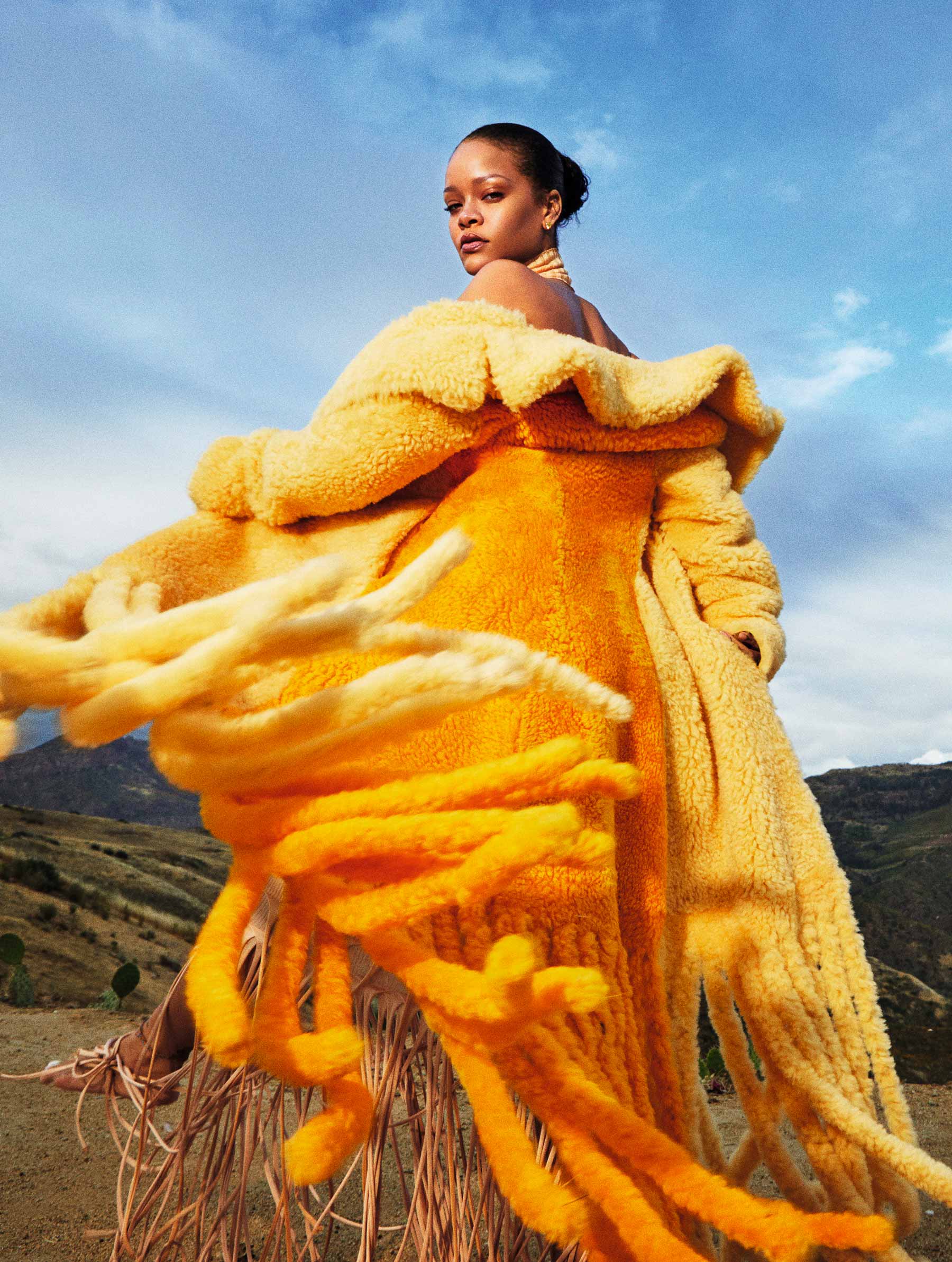 Avançando 13 anos desde nosso primeiro encontro, em adição aos álbuns de sucesso e às turnês mundiais, Rihanna construiu um gigantesco império de moda e beleza, que inclui uma linha de maquiagem, a Fenty Beauty; uma fashion house chamada Fenty, sediada em Paris e criada em parceria com o conglomerado de luxo LVMH; uma coleção de roupas íntimas inclusiva, a Savage X Fenty; e a nova linha de produtos para a pele, altamente esperada, que lançou em julho, a Fenty Skin.