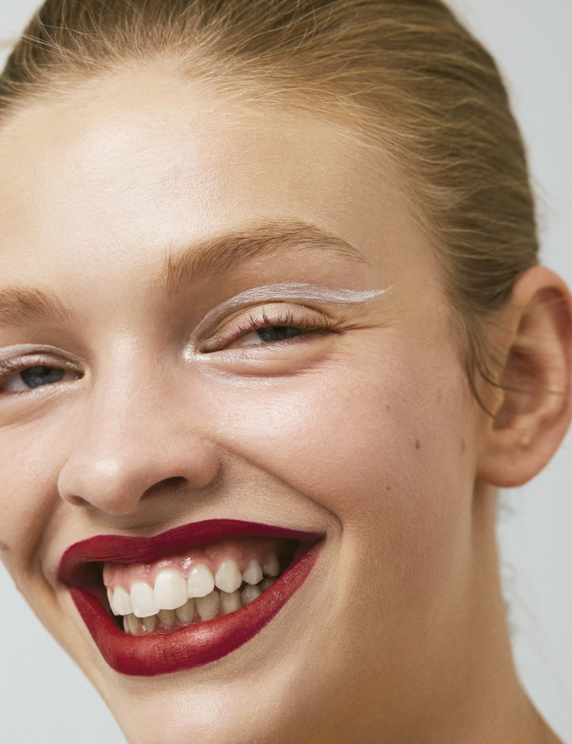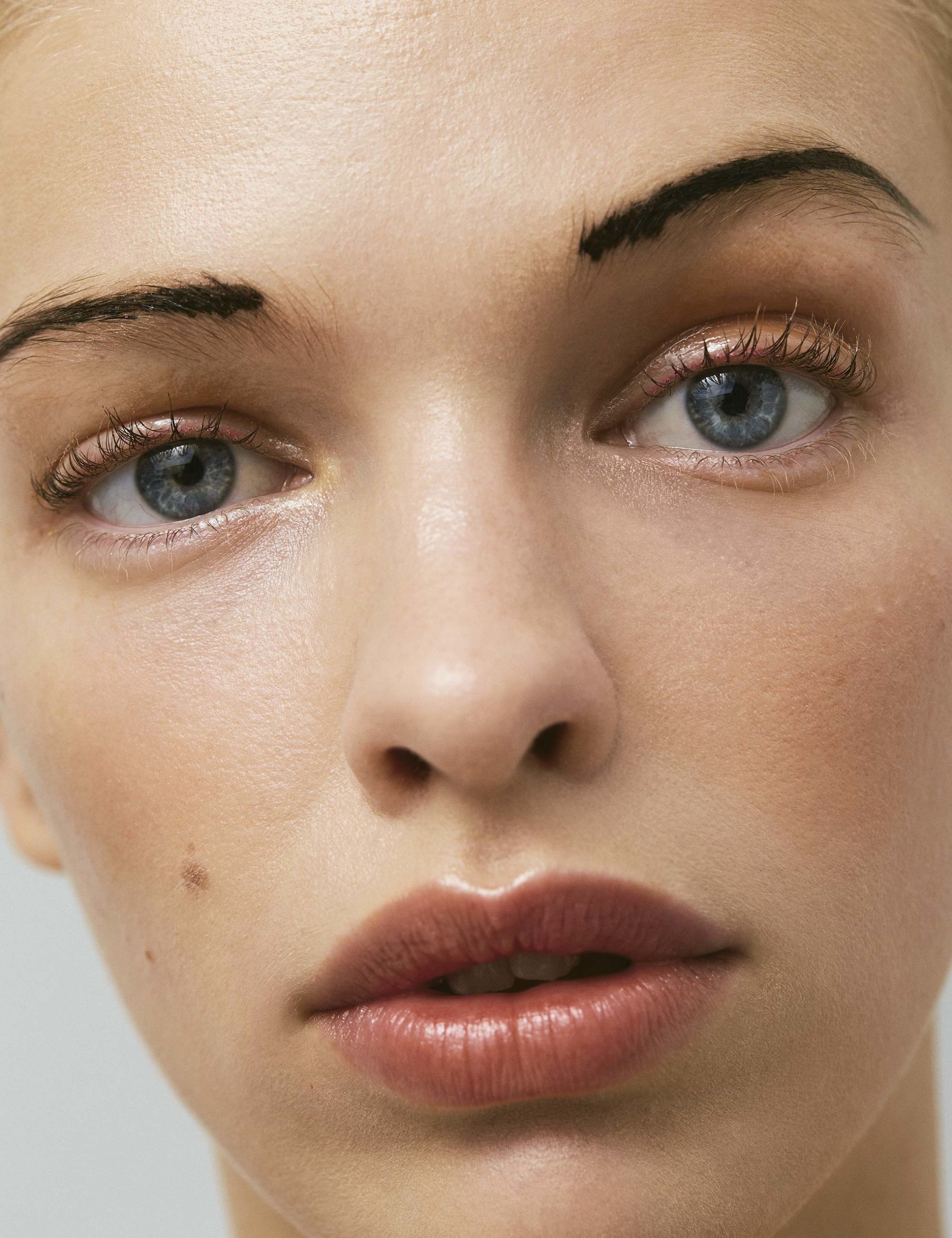Clare Crawford (IMG NYC) usa olhos feitos com máscara de sobrancelhas Dior Pump ‘N’ Brow Blonde 001 e máscara de cílios Dior Pump ‘N’ Volume Blue – Foto: Aingeru Zorita, com maquiagem de Christyna Kay, edição executiva de Filipa Bleck e cabelo de Dana Boyer