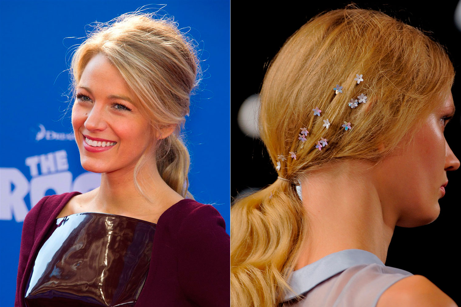 Nada como atualizar um rabo de cavalo simples com acessórios. Aproveite o revival dos tic-tacs, que fizeram muito sucesso nos anos 90, para enfeitar os cabelos. Ou coloque miniflores ao longo dos fios – muito romântico!