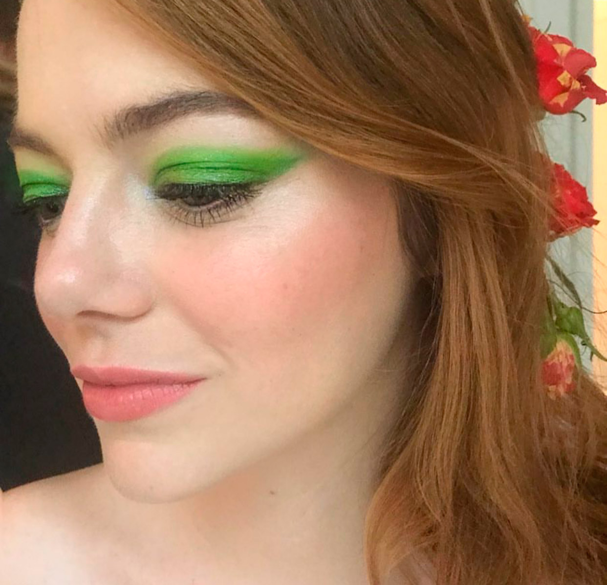 Quer um visual mais romântico? Faça como Emma Stone e aposte na sombra verde com formato gatinho.