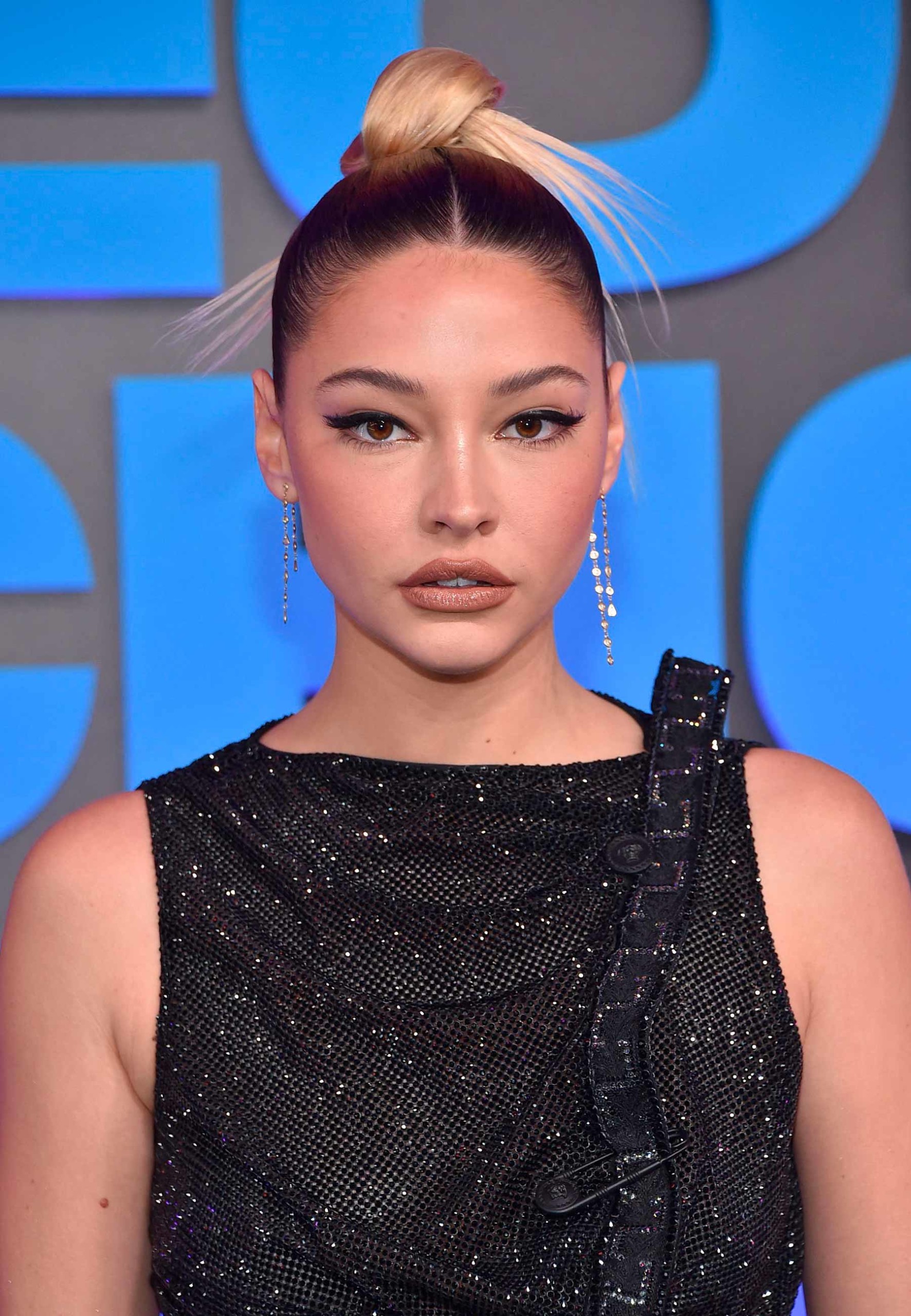 O clássico coque chega renovado com o recurso do nó, como usa Madelyn Cline. Uma ótima dica para o penteado de casamento.