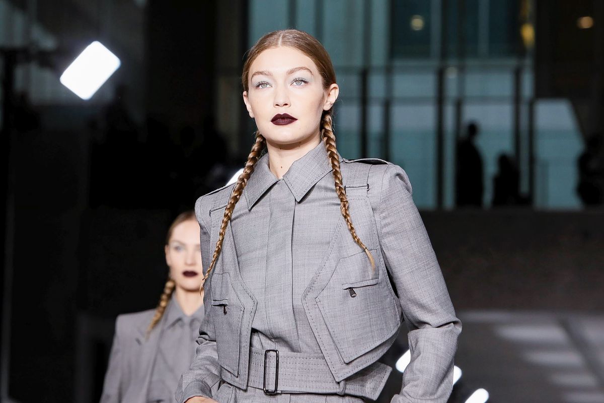 Seguindo na vibe dos fios bem rentes ao couro cabeludo, Max Mara apostou em duas tranças no lugar de apenas uma. Para isso, o cabelo foi dividido ao meio e alisado, para então serem feitas as tranças bem finas, apertando bem o cabelo para criar uma versão mais compacta do visual.