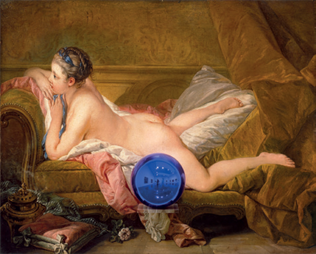 Quando eu estava pensando em começar minhas pinturas Gazing Ball, queria homenagear artistas que eu realmente amava ao emparelhá-los com esse objeto que é, ao mesmo tempo,simples e onisciente.Eu tenho um processo altamente intuitivo de fazer arte, então, escolhi obras que simplesmente gostaria que estivessem ao meu redor, como Almoço na Relva e Olympia, de Manet, ambas são muito informativas para mim.Todas as pinturas que escolhi estão incluídas entre os cânones da história da arte ocidental, mas a série como um todo pode ser encarada como meu próprio DNA artístico.São obras que sempre foram vitais para mim. Unir as imagens com uma gazing ball foi uma forma de elevá-las ao ancorá-las na metafísica e no tempo. A gazing ball reflete o aqui e agora, mas também reflete você, o observador. Portanto, reafirma sua presença, enquanto espelha a pintura também e, de certa forma, permite que você viaje no tempo, de volta à vida parisiense do século 19 com Manet.