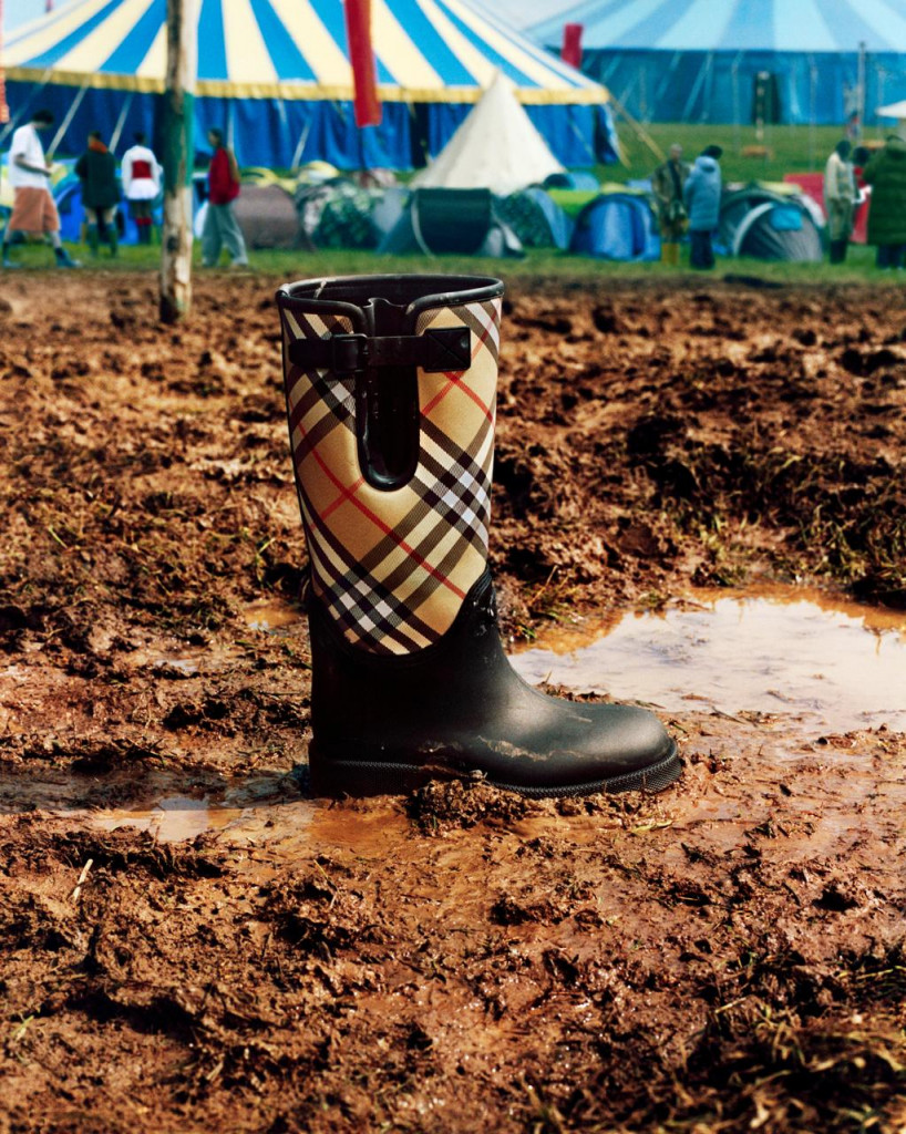 Gravada em meio a palcos, sistemas de som e a clássica lama dos festivais britânicos, a campanha exalta a Burberry como referência essencial de estilo – Foto: Divulgação