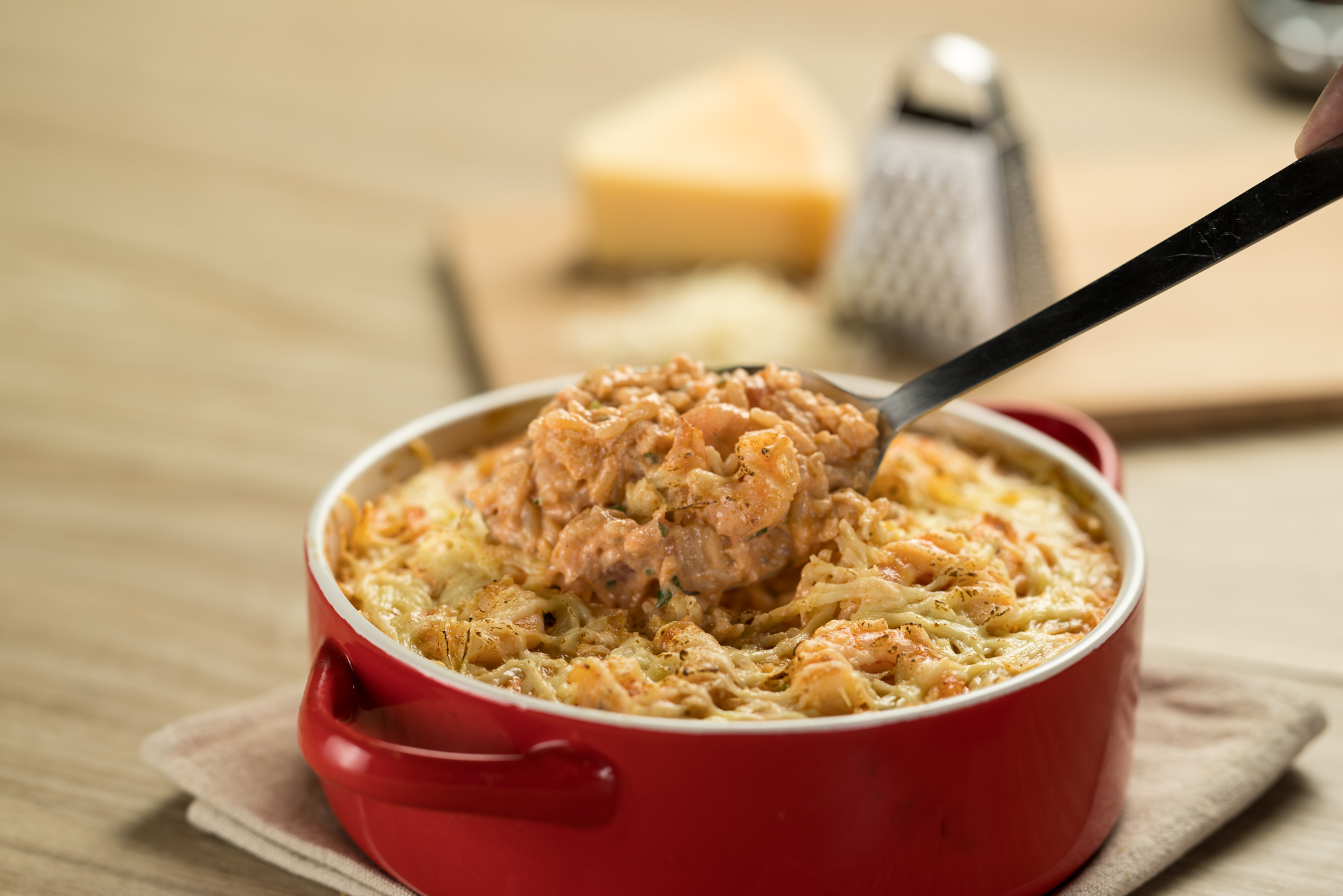 CAMARÃO GRATINADO COM MANDIOCA