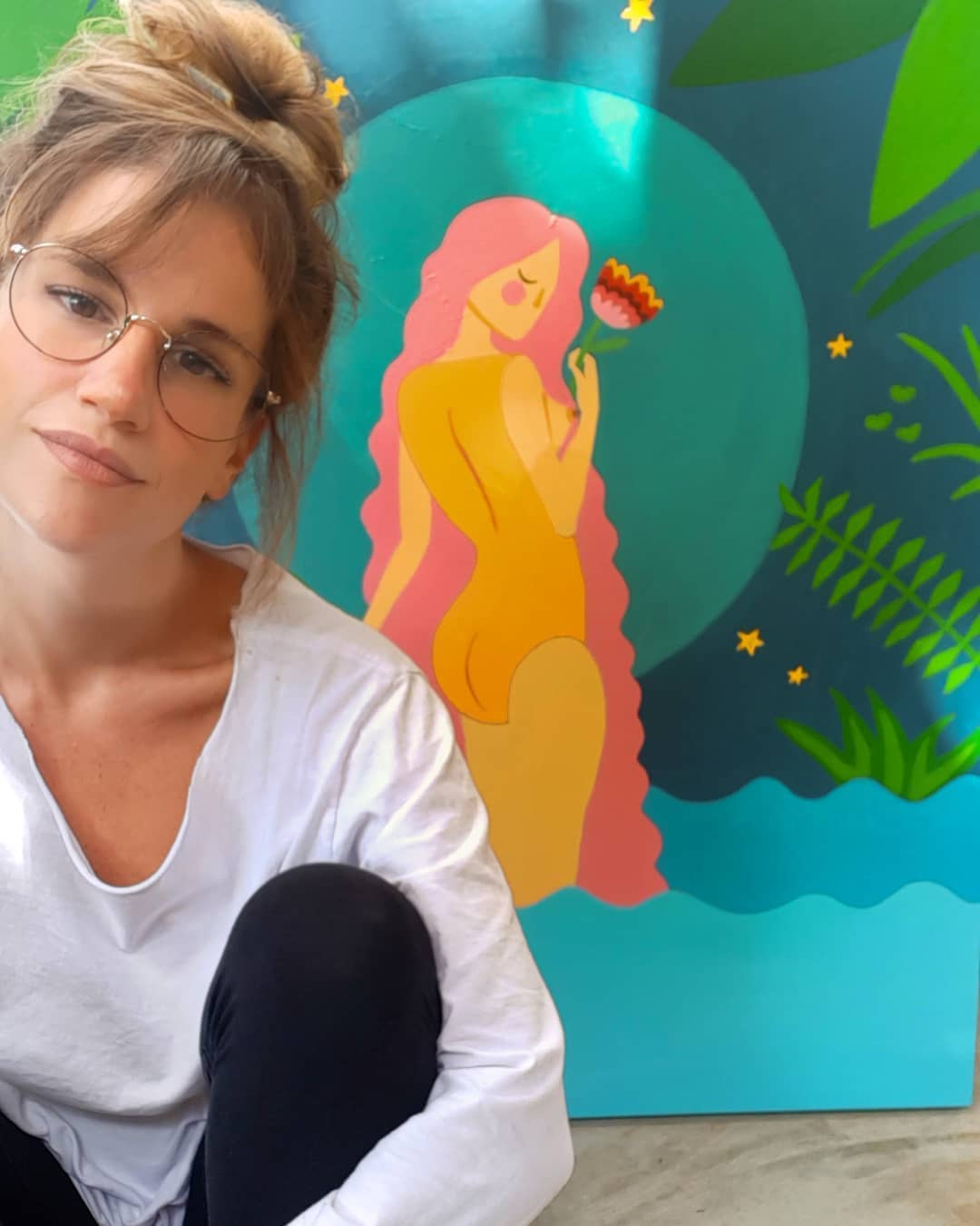 A arte entrou na sua vida através de seu avô que, além de diretor de arte em uma agência de publicidade, também era artista plástico. “Ele foi um exemplo. Tive uma conexão com isso desde pequena, porque amava o ateliê do meu avô, o cheiro de tinta, todo o ambiente. Sinto que ele foi uma figura muito importante para me conectar com a arte e para valorizar isso dentro de mim também. Comecei a pintar com ele oficialmente com 12 anos, mas sempre estive em seu ateliê. Ele tem guardado até hoje desenhos de quando tinhqa cinco anos e ele já achava incrível”, lembra.