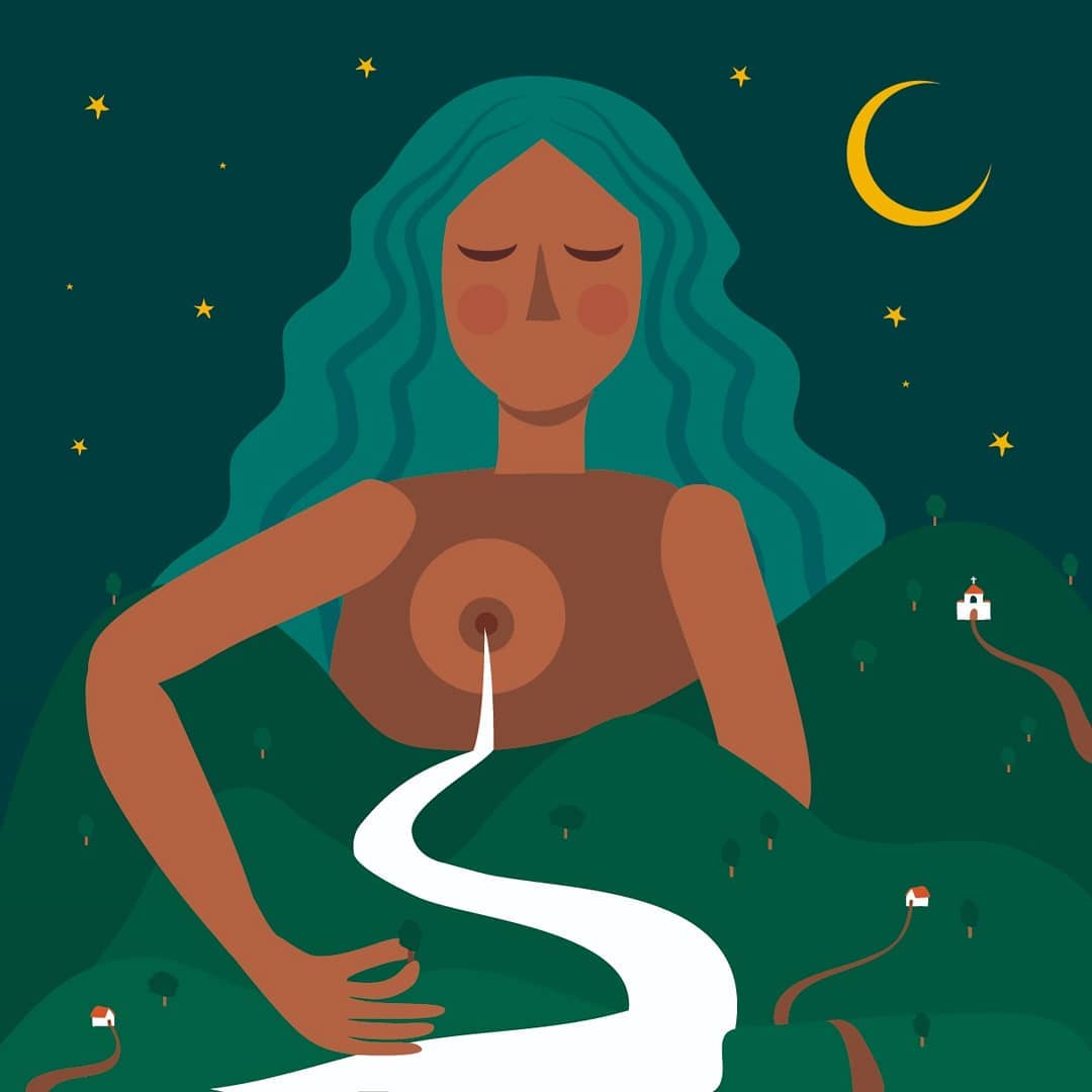 “Toda essa estética nasceu do peito da mulher. Foi a primeira coisa que quis retratar, queria desmitificar o seio feminino com a amamentação. Por isso, quase todas as minhas obras tem uma gota de leite no peito. A partir daí começou a nascer toda uma nova estética, com referências da minha criação, das mulheres da minha família”, conta.