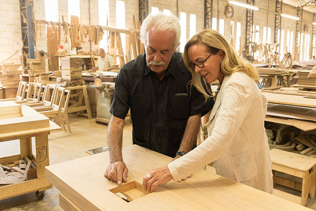 As madeiras descansam rodeadas pelos mestres marceneiros que, no convívio com elas, vão percebendo e reconhecendo suas idiossincrasias, texturas, densidades, cheiros. E quando chega o momento de transmuta-las em mesas, cadeiras, armários, biombos e o que mais for, eles, em respeito a sua integridade, não lhes cravam pregos, o que seria uma violência, e, seguindo os projetos de Etel, dela mesma ou daqueles que ela representa, cortam-lhes com apuro, cientes de suas fibras; alisam-nas por meio de uma sucessão hierárquica de lixas, juntam-lhes as partes pela via de cavilhas.
