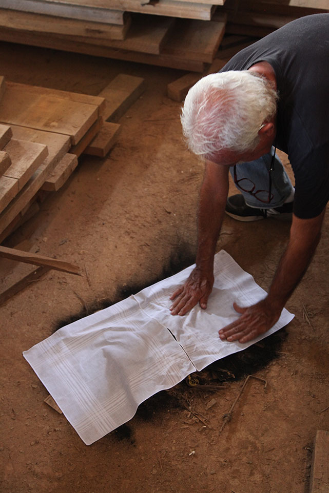 Por que monotipia? Segundo ele próprio arrisca, teria sido ela a expressão mais ancestral: o homem que tingiu sua mão com a terra colorida e prensou-a aberta sobre a parede, deixou sua marca estampada à vista dos outros. É mesmo provável que tudo tenha começado nesse gesto, nessa descoberta primeva da capacidade de nos transferirmos nas coisas. Fazer uma monotipia é atualizar esse momento mágico, um mergulho vertical no coração do tempo humano. Daí a constância com que o artista se ajoelha para realiza-las. A reverência necessária para a possibilidade da epifania.