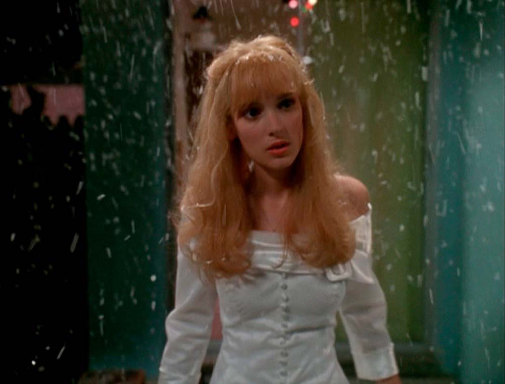 Já a personagem de Winona, a romântica Kim, veste os looks típicos dos anos 90, sempre com chemises impecáveis e o vestido branco estilo cerimônia de formatura, que ela usa na clássica cena da chuva de gelo que Edward faz especialmente para ela – um sonho!