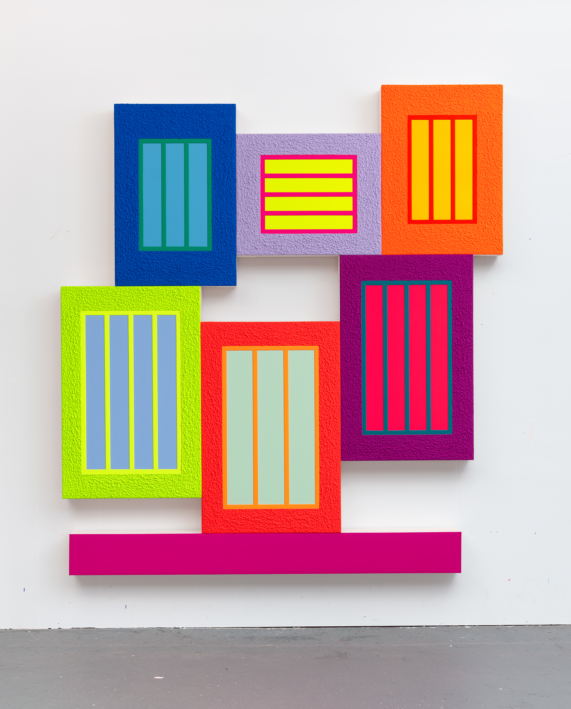 Segundo Milazzo, que vem acompanhando a carreira de Halley desde seus primórdios, sua obra partiu de um caráter mais clássico para desenvolvimentos aparentemente irrestritos nos dias atuais e que buscam contrariar uma suposta opressão do esteticismo abstrato e do positivismo. Essa postura de Halley se mostra evidente na presente exposição, que traz a produção mais recente da série Shaped Paintings [Pinturas Modeladas], iniciada em 2018, e que se situa nesta última fase mais rebelde de sua trajetória, um resultado de décadas de pesquisa.