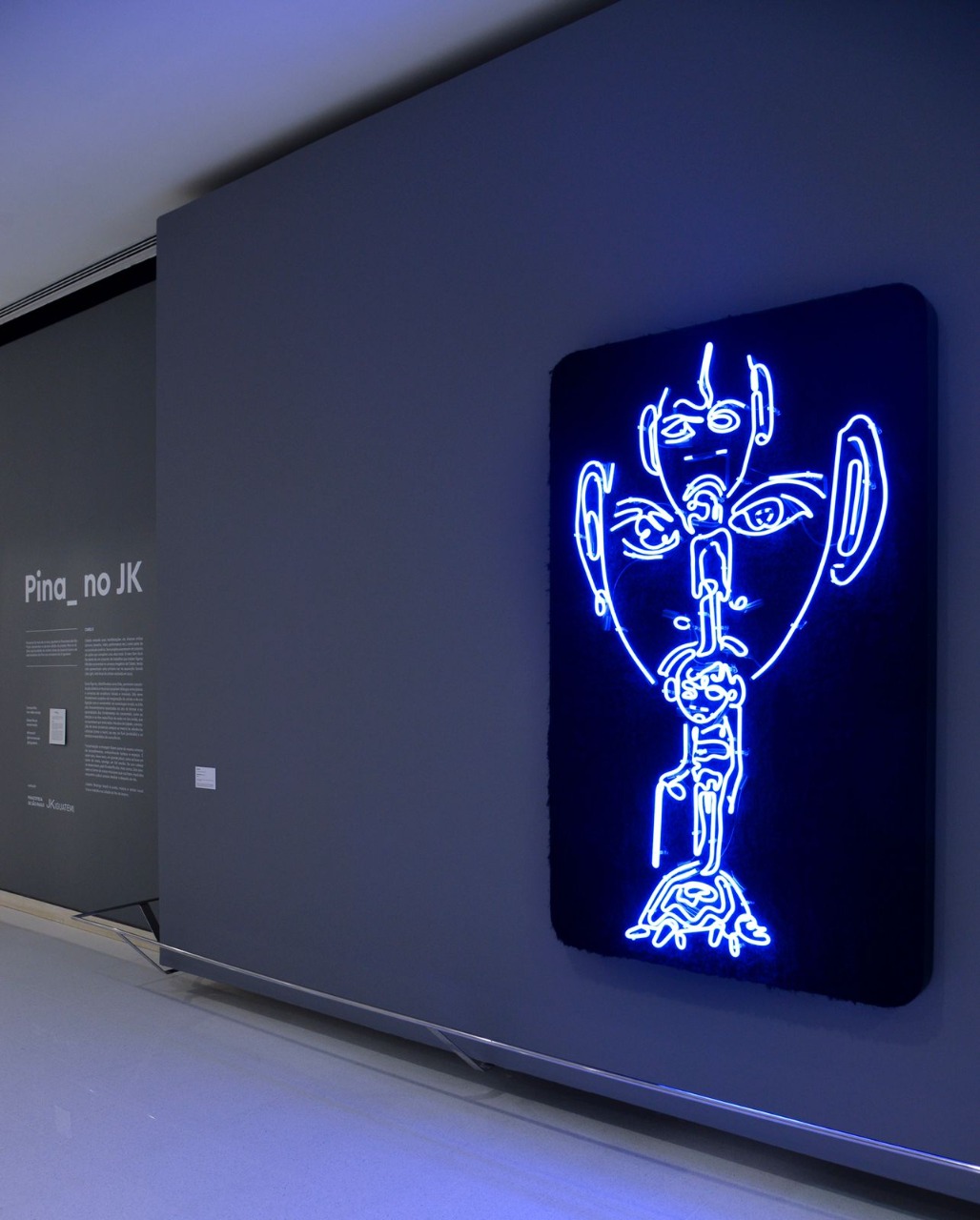 A obra sem título (2012-21) do multiartista brasileiro Cabelo (nome artístico de Rodrigo de Azevedo Saad – 1967, Cachoeiro de Itapemirim, Espírito Santo) trata-se de uma peça em neon azul e veludo sobre base de madeira integra um conjunto de trabalhos com figuras híbridas, recorrentes no universo imagético de Cabelo. São seres infra terrenos surgidos da imaginação do artista e de sua ligação com o Candomblé. Em suas peças, a evocação de seres ancestrais sempre se mescla às referências urbanas (como o neon), ao rap, ao funk e a estados expandidos da consciência.
