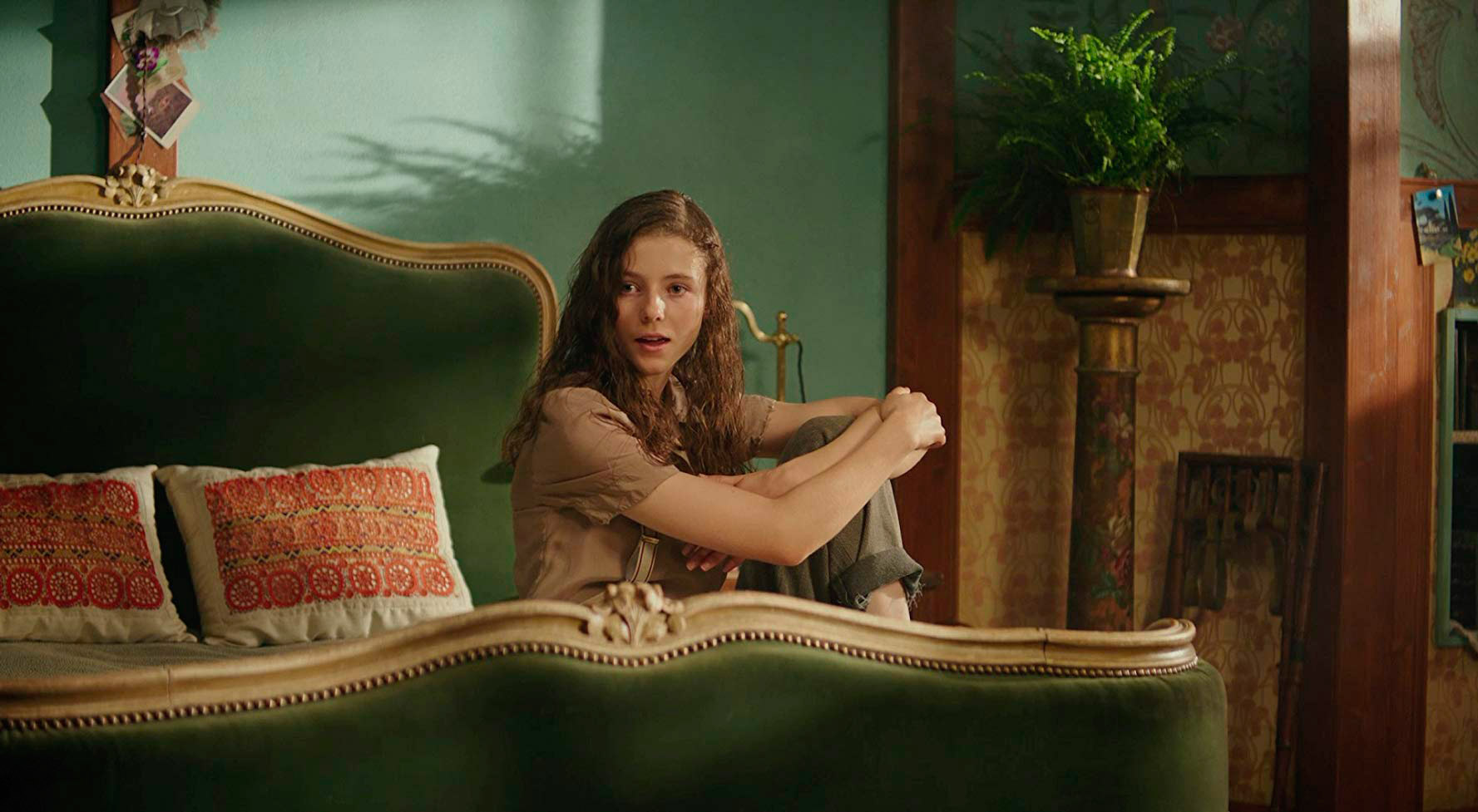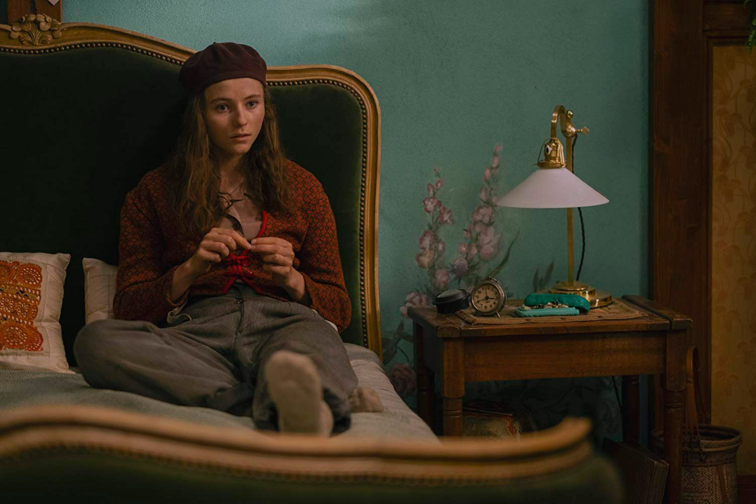Já a judia Elsa, escondida no sótão, só tem uma roupa para vestir. Um combo de blusa e calça marrom, as vezes com um cardigã vermelho por cima e uma boina para prender os longos fios.