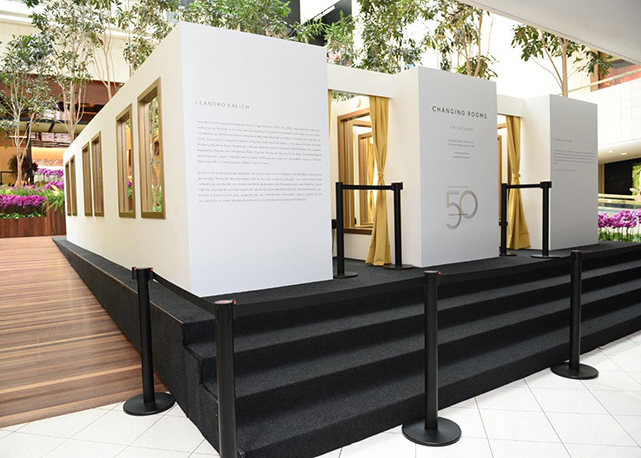 Como parte da comemoração dos 50 anos do Iguatemi (SP), o shopping convidou o artista argentino Leandro Erlich para trazer sua obra Changing Rooms ao Brasil. A instalação gratuita e interativa, que fica lá até 10 de julho, encontra-se no endereço da Av. Brigadeiro Faria Lima, na capital paulista, e é formada por diversos provadores que, juntos, criam uma ilusão de infinito.