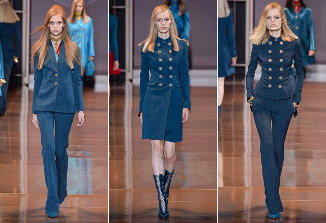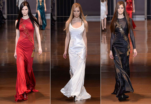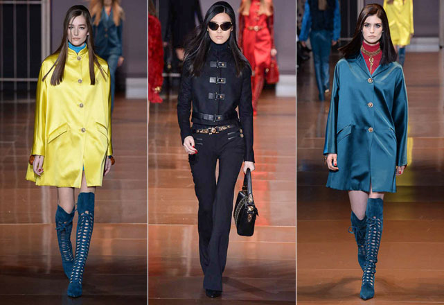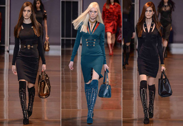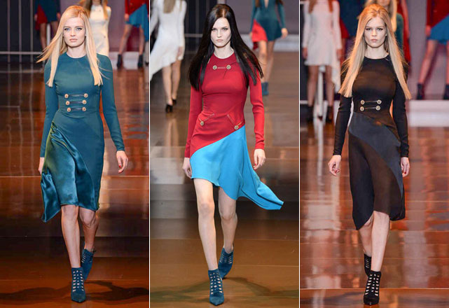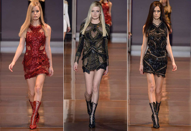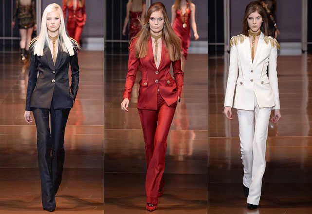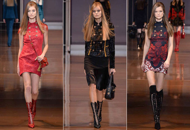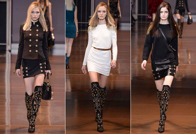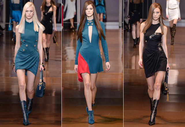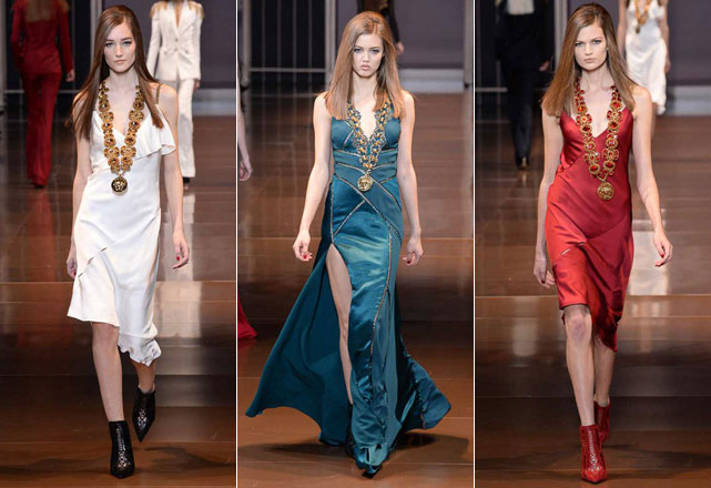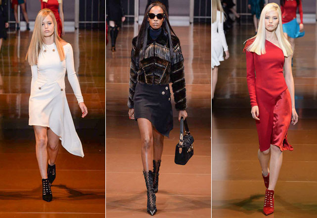 Mudam as estações, mas o DNA da Versace segue intacto. Roupa sexy no ultimo grau, vestidos adesivos, pernas de fora e muito, muito ouro. Tudo é bem decorado, das botas às jaquetas de pele colorida, passando por minissaias e blazers com seus respectivos botões reluzentes. Os melhores momentos ficam para os slip dresses assimétricos, que, sem o exagero de pulseiras e penduricalhos, podem funcionar até para as minimalistas.
