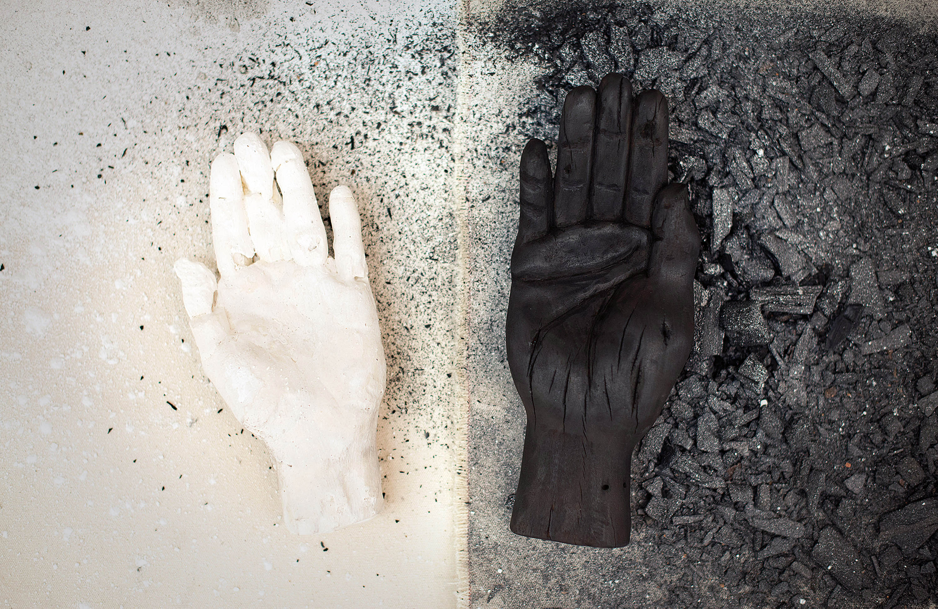 Ao todo, encontram-se desenhos, serigrafias, objetos, vídeo e fotografia. No salão principal da galeria, a instalação que dá nome à exposição é um dos destaques, e ocupa quase todo o andar. Nela se encontram reunidos desenhos em carvão, giz e lápis; fotografias em grande formato; um vídeo; e uma série de minerais brutos como gipsita, gesso, cal (branco), carvão mineral e carvão vegetal. Além disso, Braga distribuiu pelas paredes algumas serigrafias feitas em lona. A ideia é deixar em destaque a oposição entre as cores do branco e preto presentes nestes materiais.