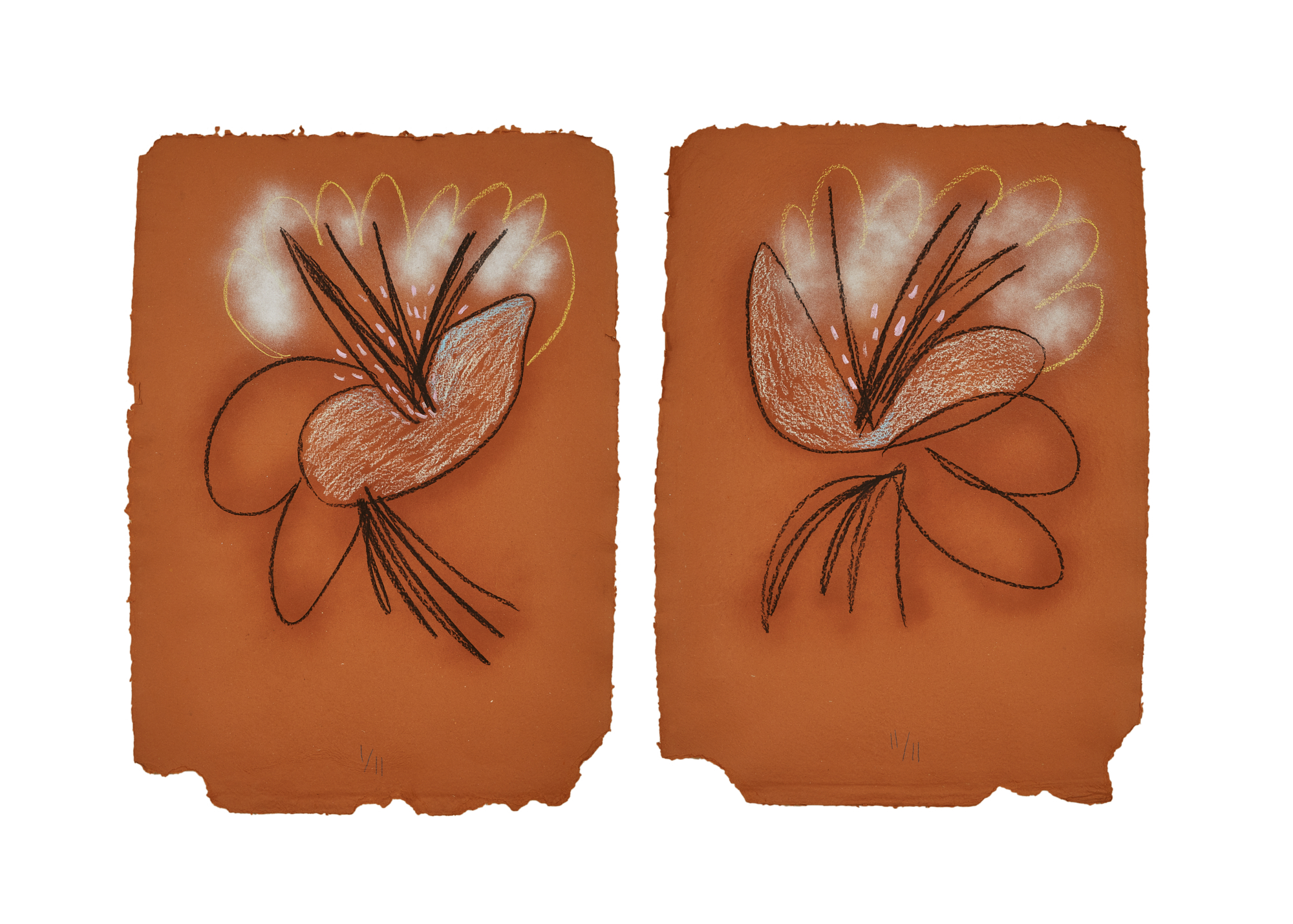 A ideia de mudança é central na produção da artista. Para Clarissa, Tadáskía é uma artista atenta às transformações. Não apenas ao que muda, mas à potência do contínuo transformar-se; ao que vai, volta e muda de direção; à circularidade, às espirais e tangentes. “Para se lançar à força da transformação, o desenho tem sido sua principal companhia”, explica a curadora. “Cores, pastéis, pós, lápis, esmaltes ou pincéis têm sido aliados num desenhar que é uma pulsante e experimental coreografia de transformações que se dão no papel, na cor, na linha, na imagem, no corpo, no espaço.” Tadáskía desenha para transformar e transforma desenhando. Seus traços fazem figuras se transmutar, papéis se tornarem céus, as palavras borrarem seus próprios sentidos. “Seu corpo é também potência de transformação de sua espraiada e heterogênea relacionalidade: por meio de aparições, performances, vídeos, fotografias, testemunhamos os corpos que a atravessam e que a constituem mudarem suas posições ontológicas e marcadores sociais, enquanto a própria artista transiciona e põe tudo o mais para girar com ela”, prossegue a curadora. “Ao fazê-lo, esgarça a paixão e o compromisso que seu desenhar tem com as formas para o campo do político e do racial, dando a ver que desenhar para transformar é também um modo de redesenhar a forma do mundo tal como hoje o conhecemos, transtornando-o”, finaliza.