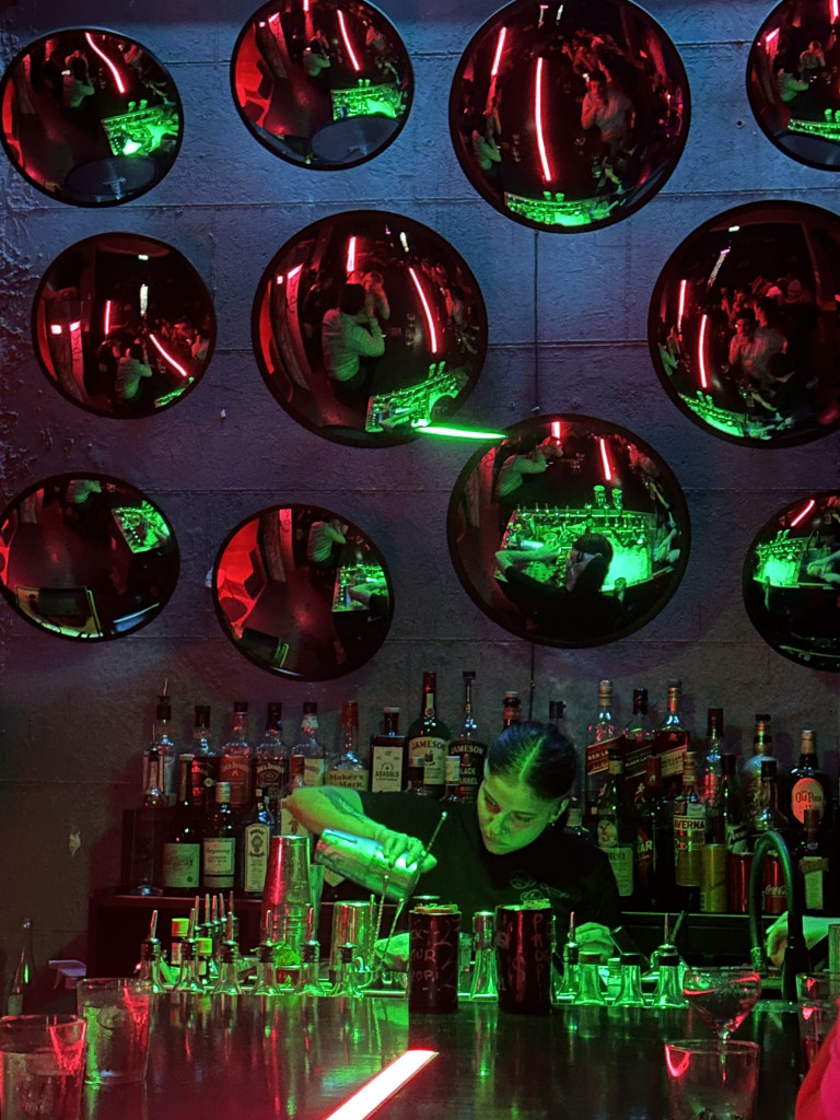 Agora, mais perto de Palermo: o Tres Monos. Um local despretensioso, mas surpreendente. Aqui, os drinks autorais são um espetáculo. O local possui vários neons e um ambiente musical forte. Inclusive, o cardápio imita um encarte de CD. Super cool! Agora, caso você goste de algo mais clássico, o Vini Bar é uma pedida certeira. Pertinho do Tres Monos, o bar de vinho é muito aconchegante. Com cadeiras na calçada e muitas luzes de vela, o espaço é encantador, assim como a cartela de vinhos. Outro bar/restaurante incrível é o Cochinchina. O ambiente moderno e com toque oriental garante uma noite inesquecível. Os drinks são ótimos, inclusive, os aurorais. Além disso, a comida é ótima. Vale sentar no balcão para ver os drinks sendo preparados. Ahh, quando fui, também tinha um DJ tocando. Um local memorável é o AVG Electric Café, um bar embaixo do trilho dos trens que também faz discotecagem de disco.