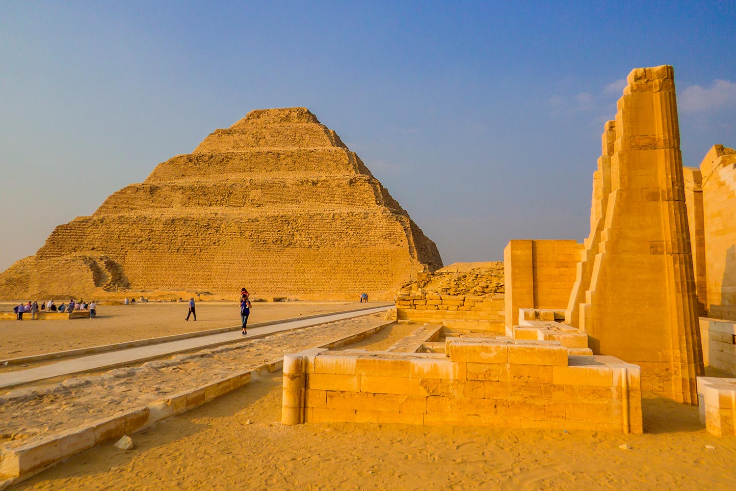 Localizada a 30 quilômetros ao sul do Cairo, Saqqara é o maior sítio arqueológico do Egito. Conhecida especialmente pela pirâmide escalonada, sepulcro do faraó Djoser, constituída por diversos degraus em 62 metros de altura, a região abriga ainda mais onze pirâmides e diversas tumbas. Foi construída para ser a necrópoles de Menphis, capital do Império Antigo. Durante sua atividade, chegou a ter sete quilômetros de extensão. As tumbas mais antigas são da 1ª Dinastia (3100 – 2890 a.C).