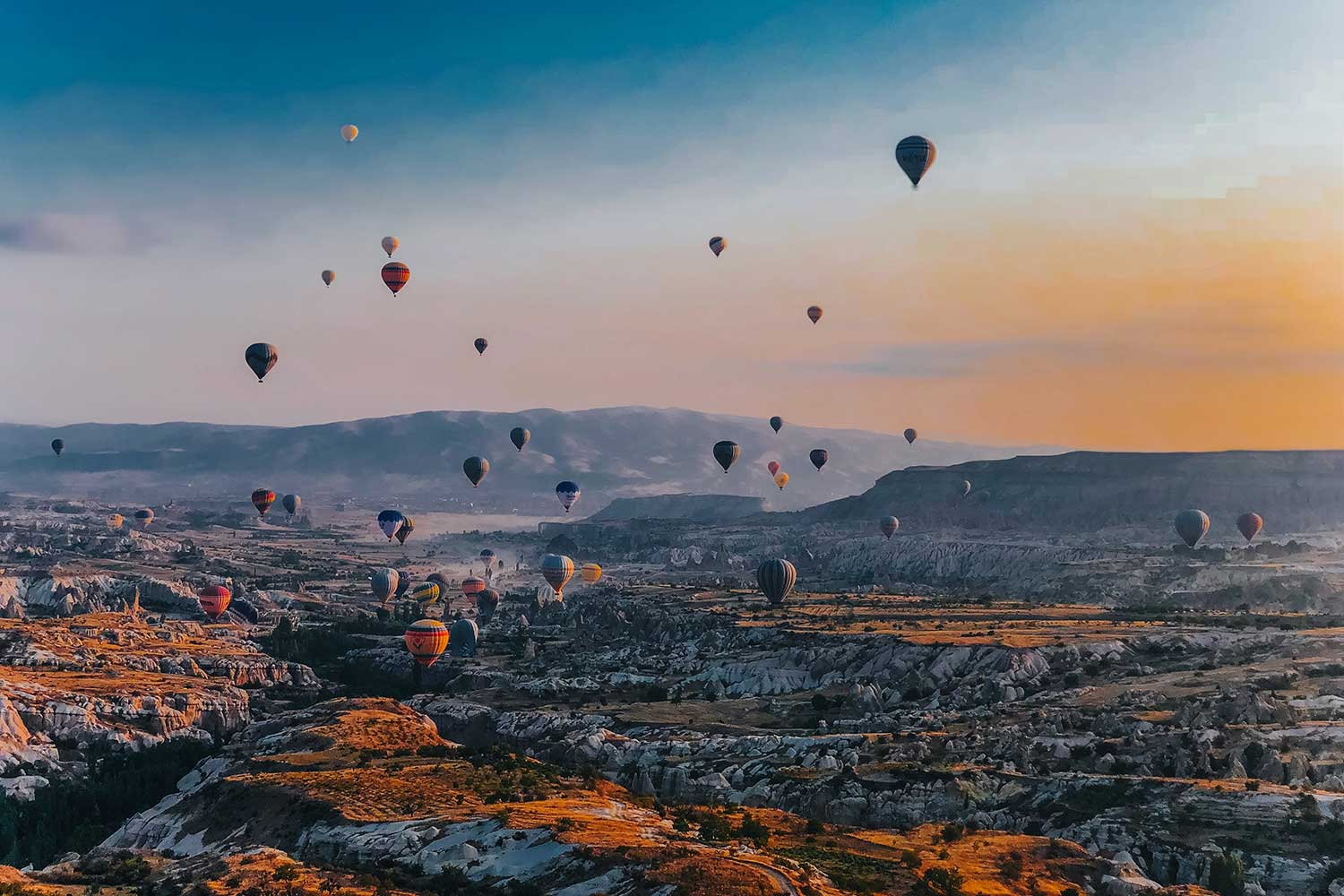 O passeio de balão é imperdível. A vista é única e são cerca de 150 balões voando por dia entre os horários das 6h às 8h, em regiões próximas que tornam o nascer do sol ainda mais maravilhoso. O passeio dura entre 40 minutos e uma hora. Eles sobem e descem no céu, dando a oportunidade de ver as nuances das formações rochosas milenares de pertinho.