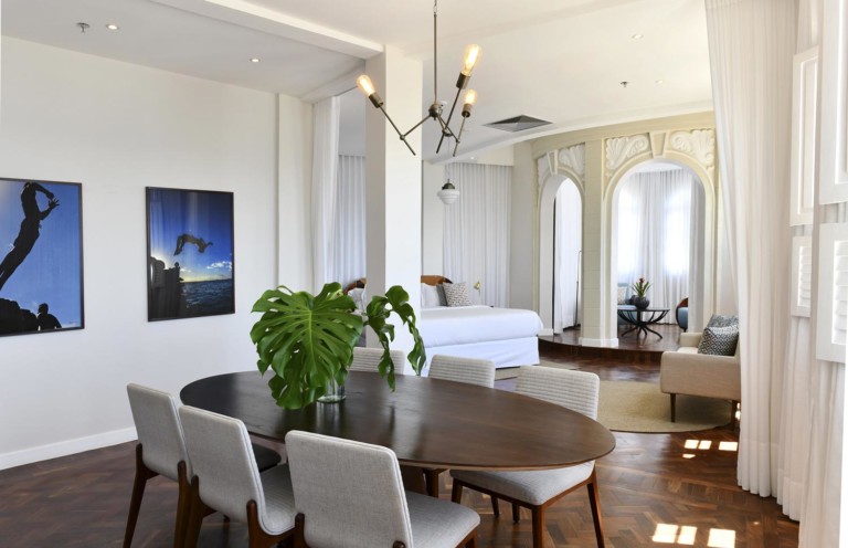 Construído em estilo Art Déco em 1934 pelo Comendador Martins Catharino, um dos homens mais ricos da época, o Fera Palace Hotel foi inspirado no Flatiron Building de Nova York. O prédio que foi adquirido pela rede Fera Hotéis em 2012, ganhou um super projeto de restauração que contou com a assinatura do premiado arquiteto dinamarquês, Adam Kurdahl, um dos curadores do pavilhão nórdico da Bienal de Arquitetura de Veneza, que não apenas preservou, mas realçou as características marcantes do edifício. A inauguração aconteceu em 2017, depois de longos cinco anos de obras, mas ainda hoje, ao visitar o hotel, parece que foi inaugurado ontem. Tudo muito novo, clean e cheio de axé.