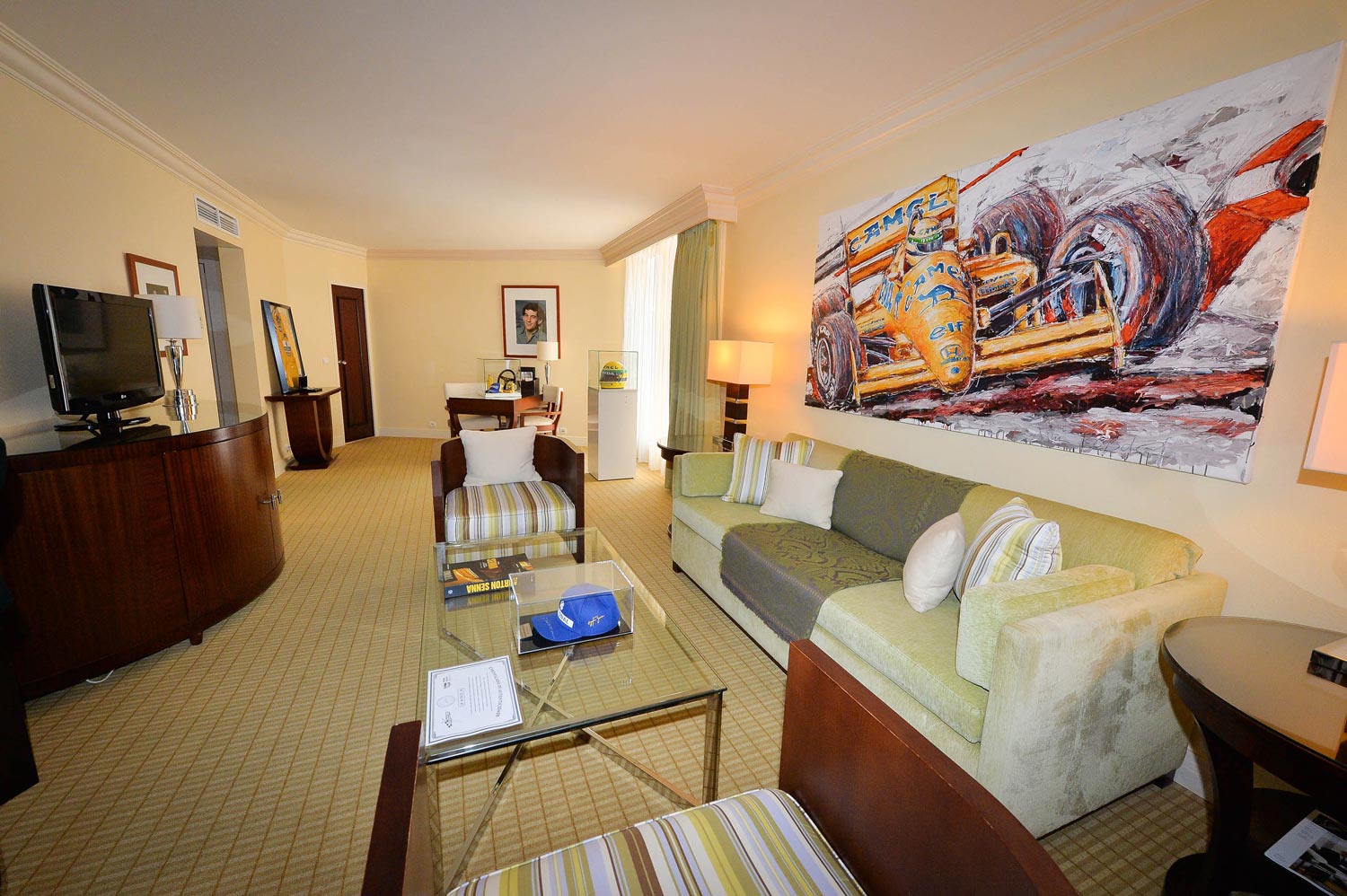 Por esse motivo, um dos hotéis-palácio mais importantes do principado, o cinco estrelas Fairmont, inaugurou uma suíte em homenagem ao nosso (e deles) herói nacional. Intitulado Ayrton Senna, o quarto do terceiro andar oferece uma vista privilegiada: a curva mais lenta do famoso circuito de 78 voltas, mas também a entrada do túnel.