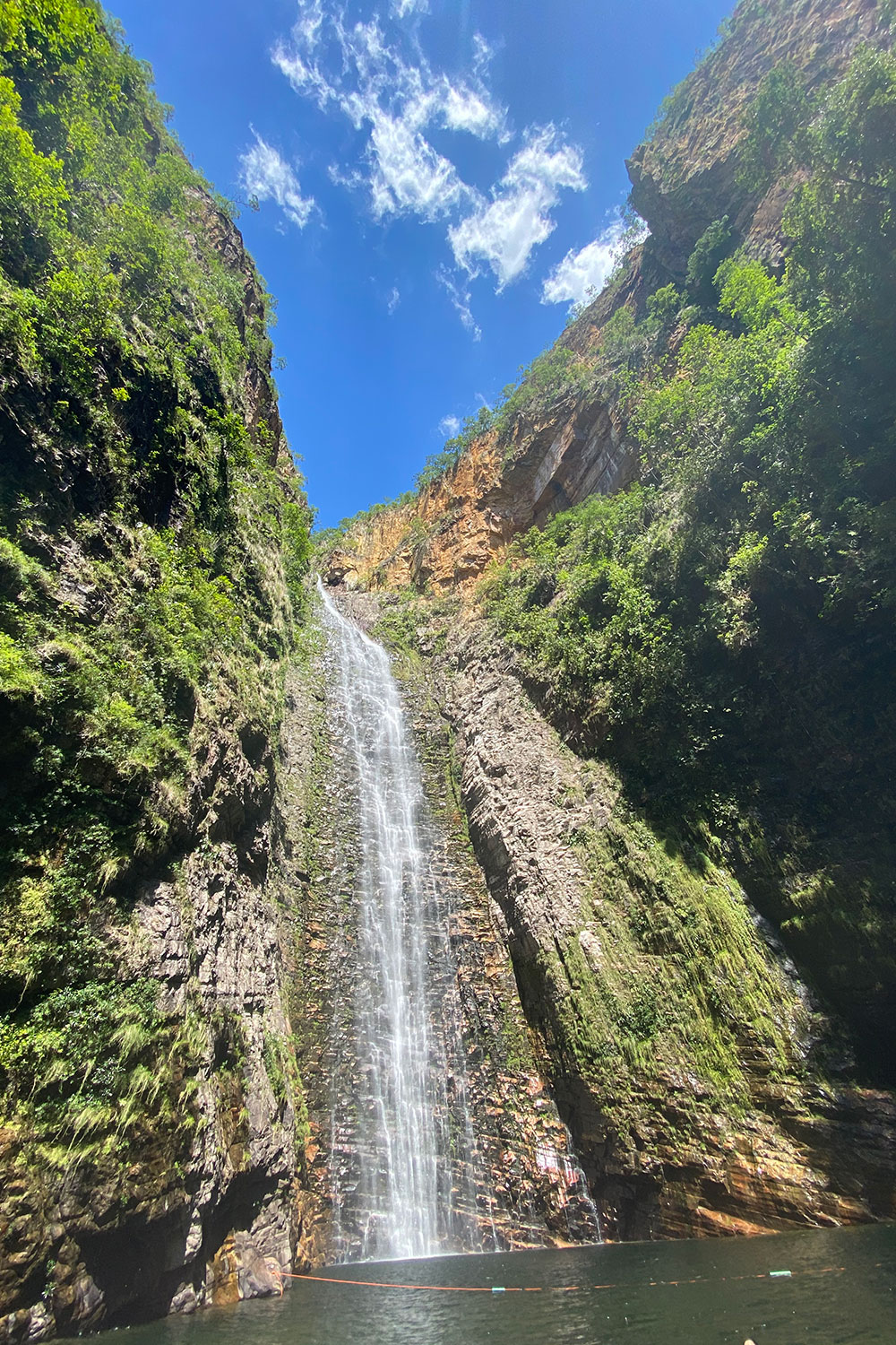 O complexo das Cataratas dos Couros é dos lugares mais bonitos que já visitei. Por ser de difícil acesso, a 53 km de Alto (18 km em asfalto e 35 km em estrada de terra), o local atrai menos visitantes do que sua beleza merece. A primeira trilha, não muito fácil e cheia de pedras, leva até a magnífica Cachoeira da Muralha, um conjunto de quedas d’aguas por cima de formações rochosas em tom alaranjado. Lindo de morrer. A Muralha é dos melhores pontos para nadar.