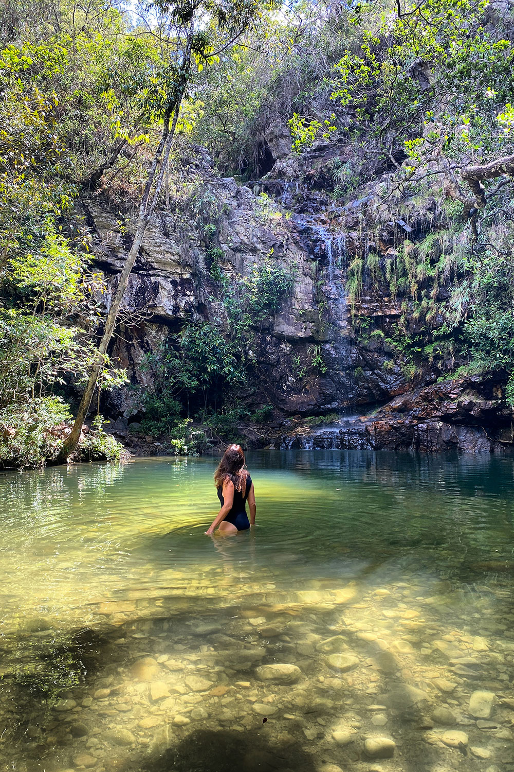 No meio do caminho até lá, uma parada na Prainha – uma praia de rio de águas azuis turquesas – é uma ótima pedida para refrescar e dar um gás extra para completar o resto da trilha. A última parte conta com uma visão aberta para a incrível Serra do Segredo.